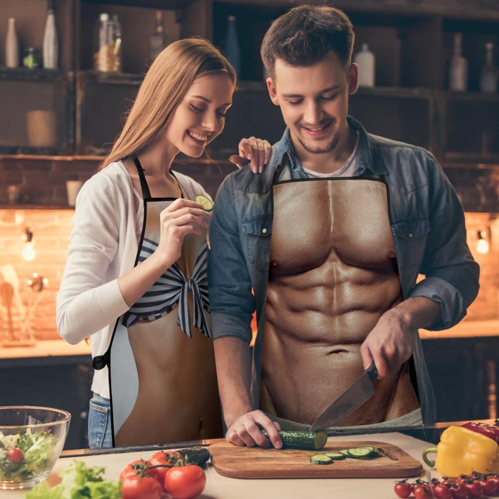 筋肉とビキニのパターン楽しい料理エプロン
