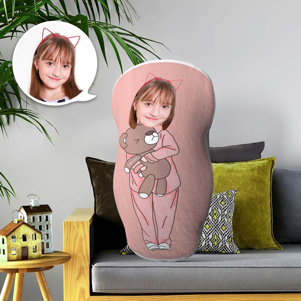カスタム顔抱き枕-DIYポートレートクッション-両面印刷かわいい女の子熊柄ピローギフト