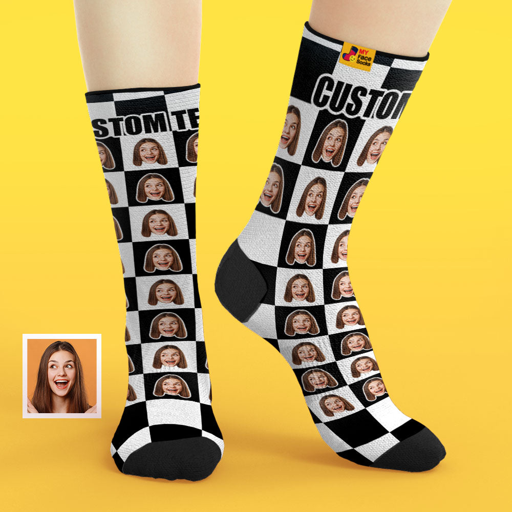 カスタム通気性フェイスソックス - 写真入れ可能なオリジナル靴下 - 黒白のチェック柄