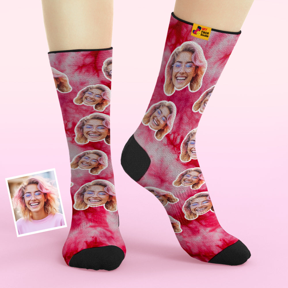 カスタム通気性フェイスソックス - 写真入れ可能なオリジナル靴下ギフト - 鮮やかな絞染めピンク
