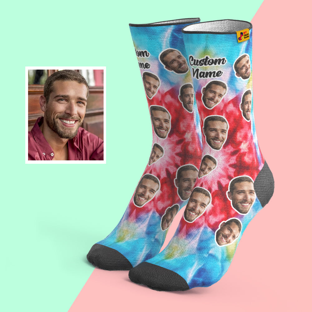 カスタム通気性フェイスソックス - 写真入れ可能なオリジナル靴下ギフト - 鮮やかな絞染め