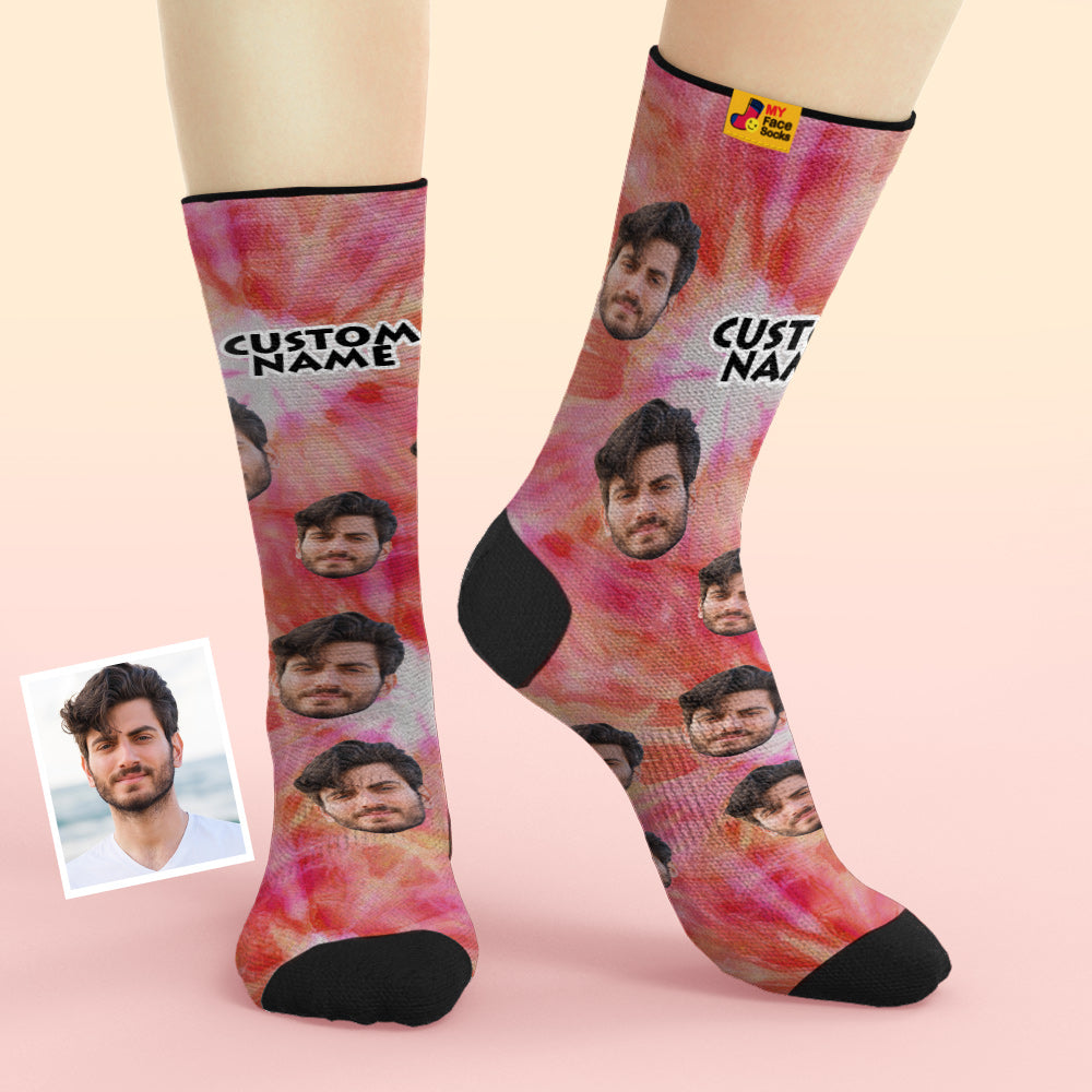 カスタム通気性フェイスソックス - 写真入れ可能なオリジナル靴下ギフト - 氷染め
