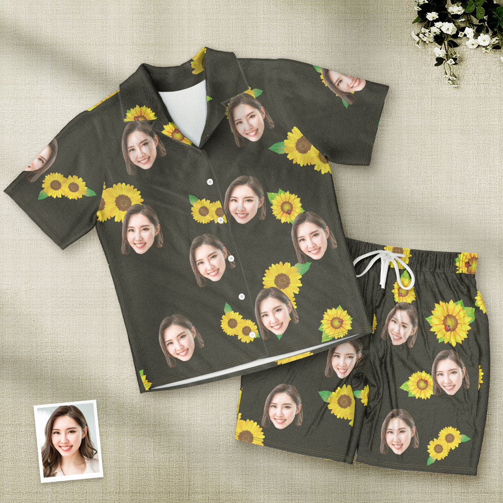 カスタムフォトパジャマ-写真入れ可能なオリジナルひまわり柄半袖パジャマ-夏の涼しいパジャマギフト
