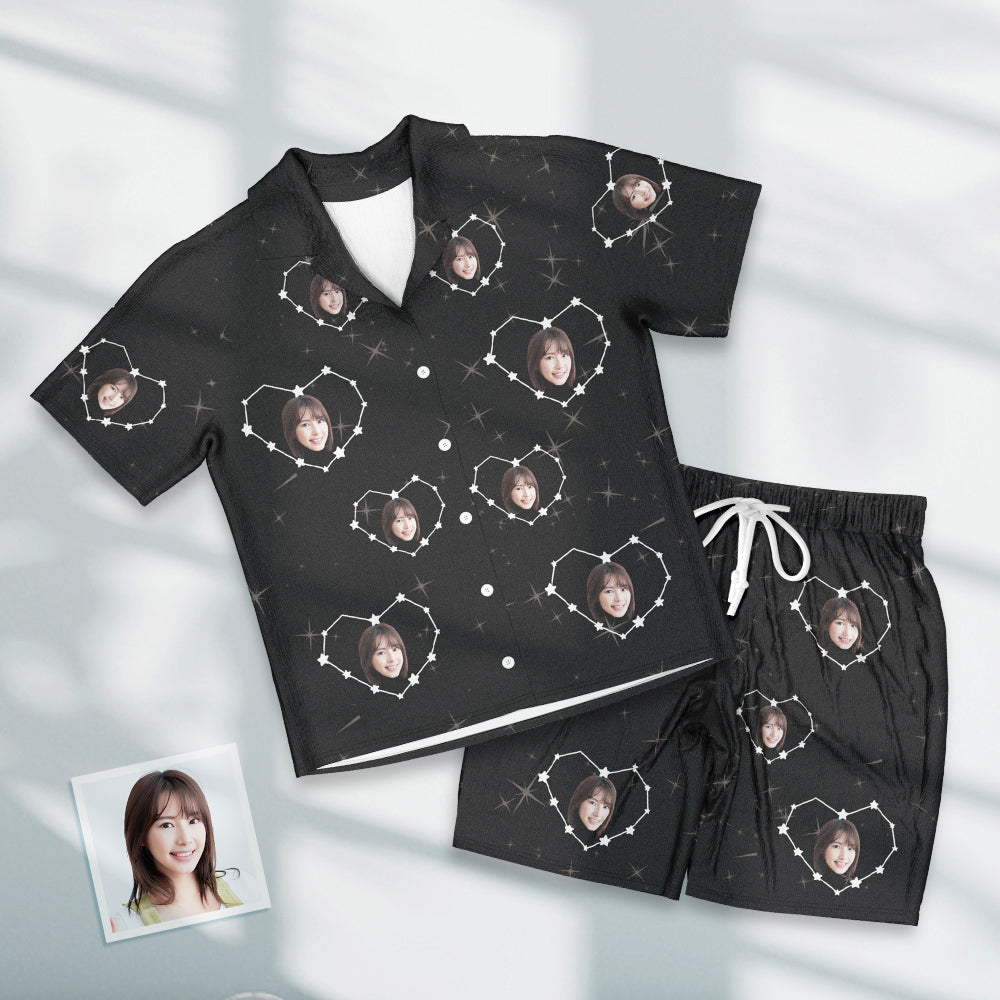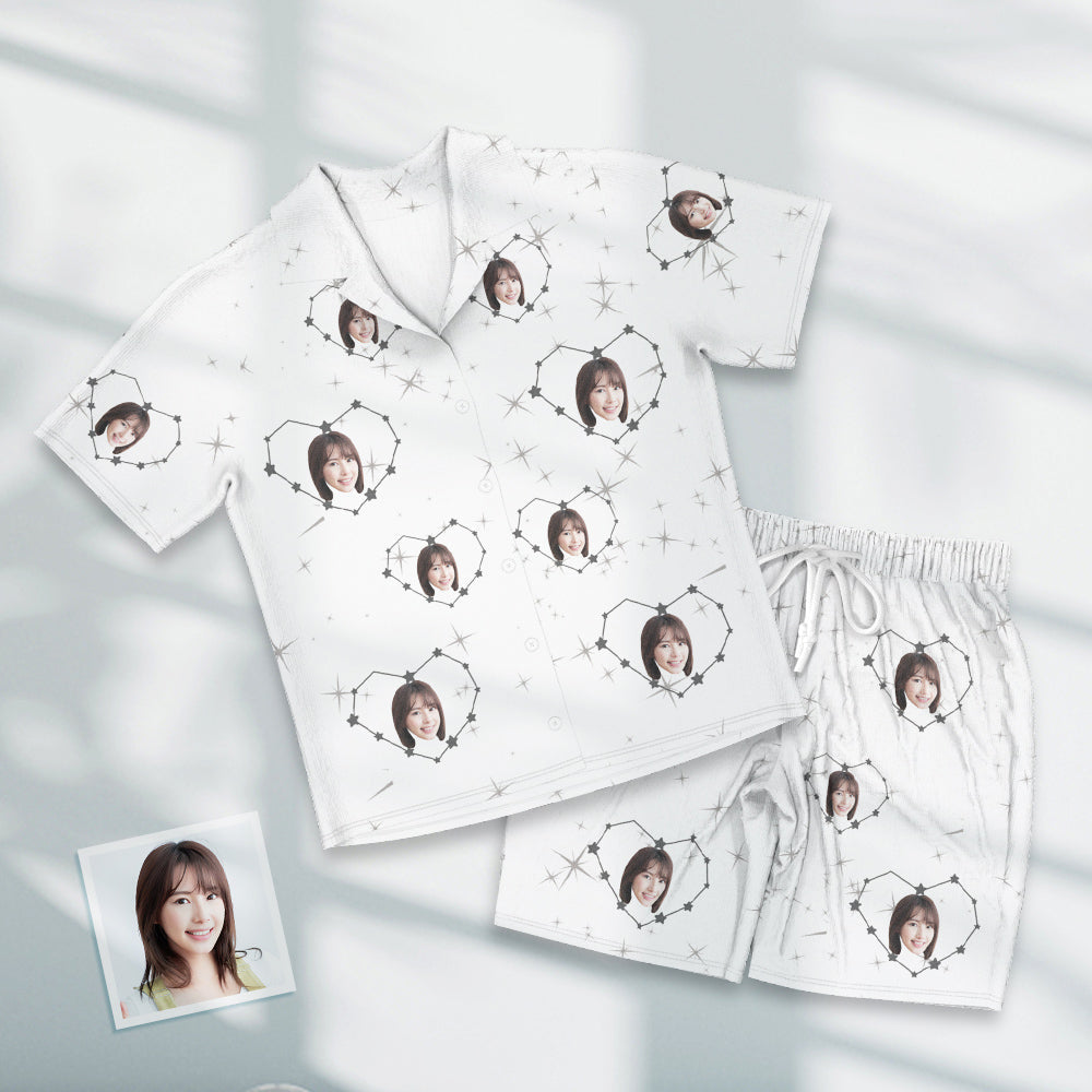 カスタムフォトパジャマ-写真入れ可能なオリジナル夏の涼しい半袖パジャマギフト-きらめくハート