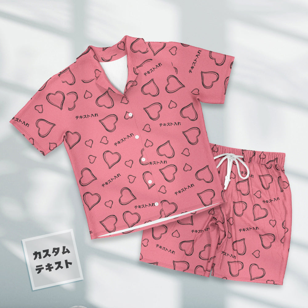 カスタム名前パジャマ-テキスト入れ可能なオリジナル夏の涼しい半袖パジャマギフト-ハートいっぱい