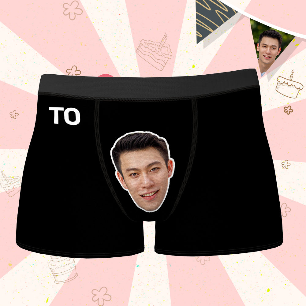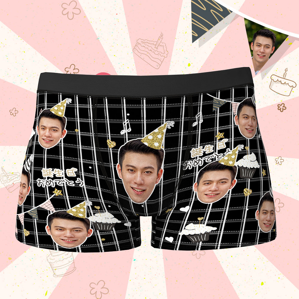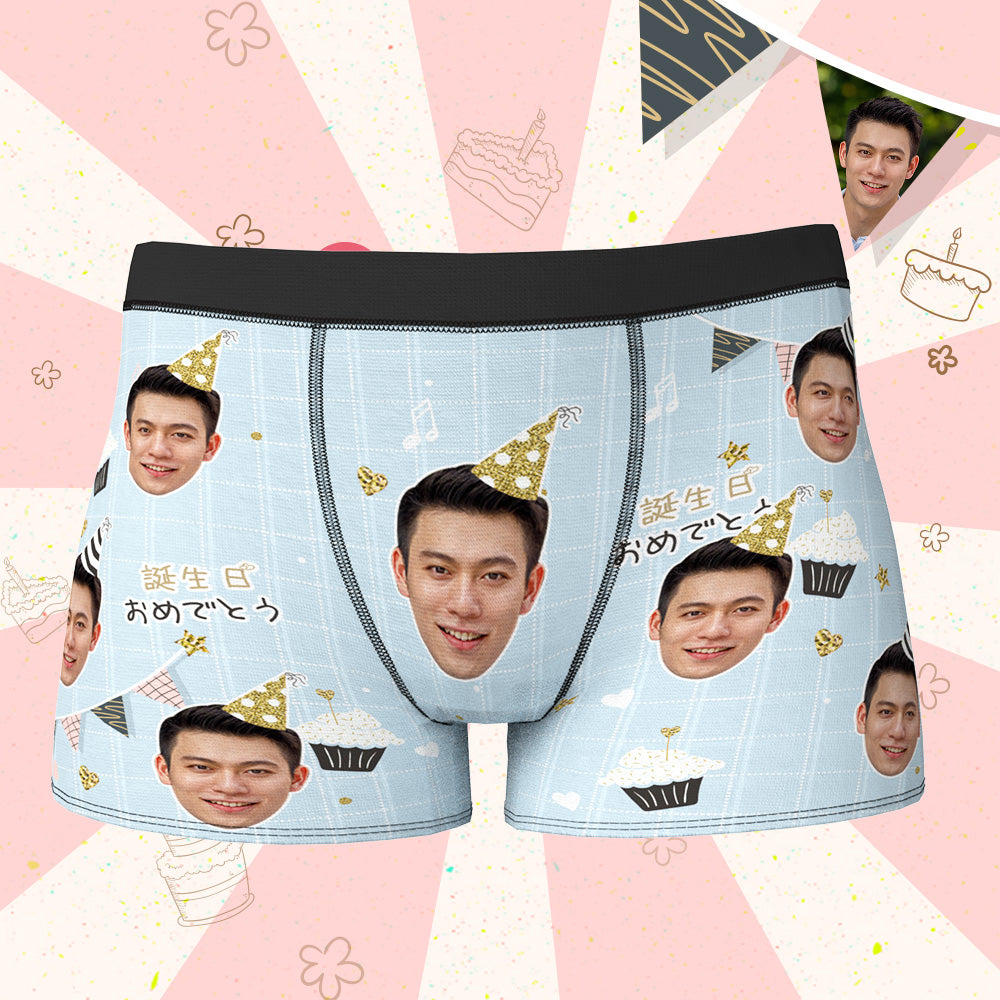 カスタム誕生日ボクサーパンツ-顔の写真入れ可能なオリジナルフォト下着ショーツギフト-誕生日おめでとう