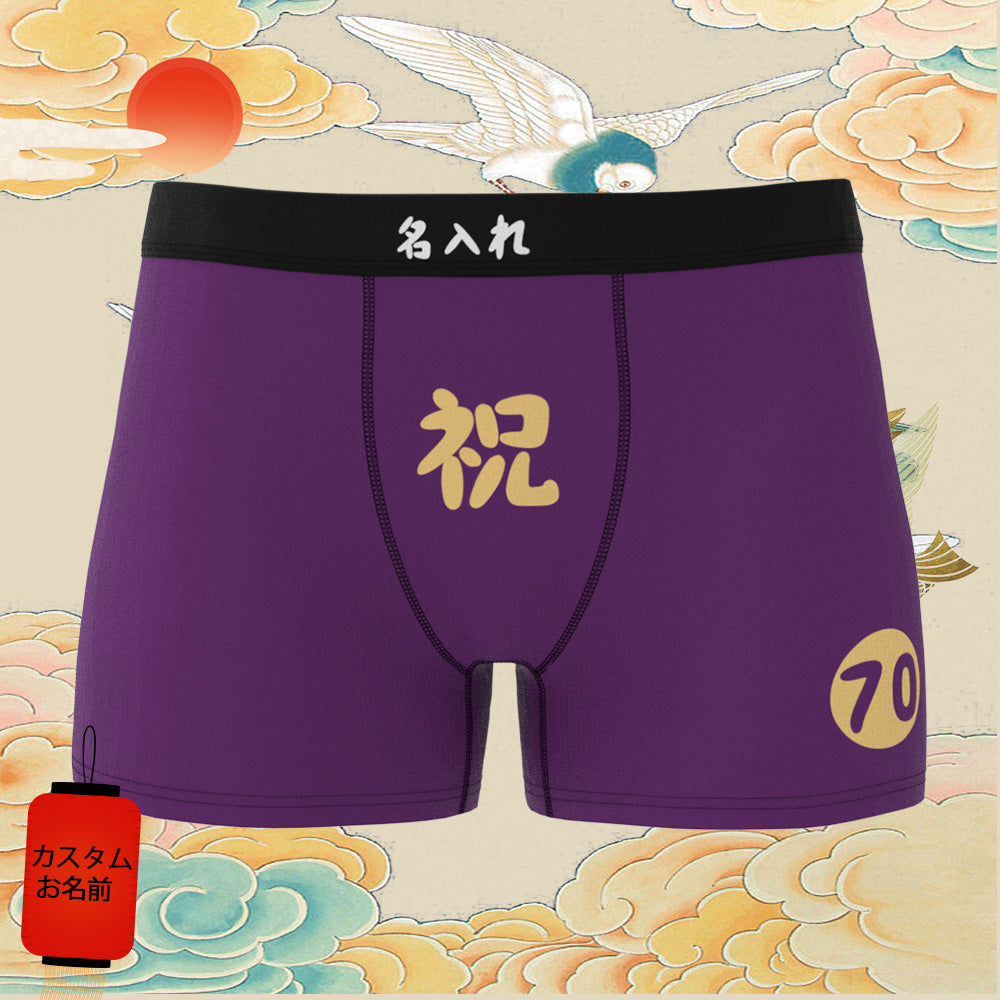 カスタム名前ボクサーパンツ-テキスト入れ可能な誕生日下着70歳お祝い古希ボクサー