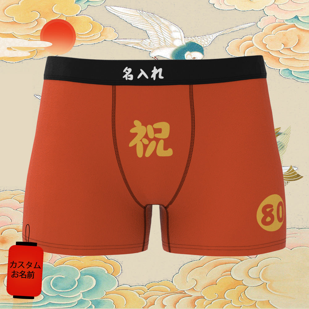 カスタム名前ボクサーパンツ-テキスト入れ可能な誕生日下着80歳お祝い傘寿ボクサー