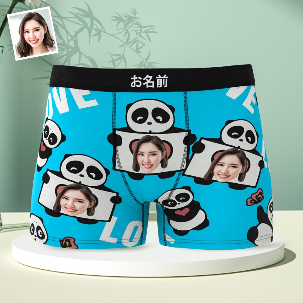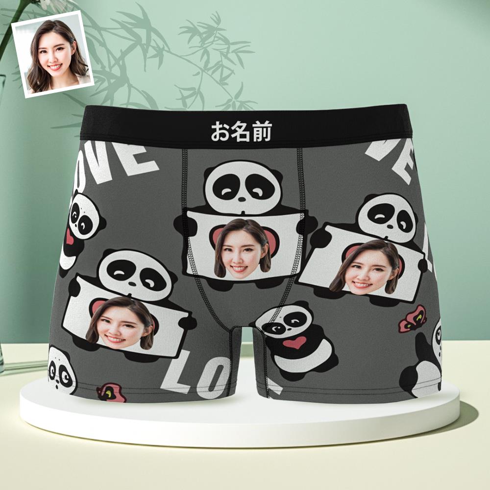 カスタムフォトボクサーパンツ-写真とテキスト入れ可能な超可愛いパンダの下着彼氏や旦那へのギフト