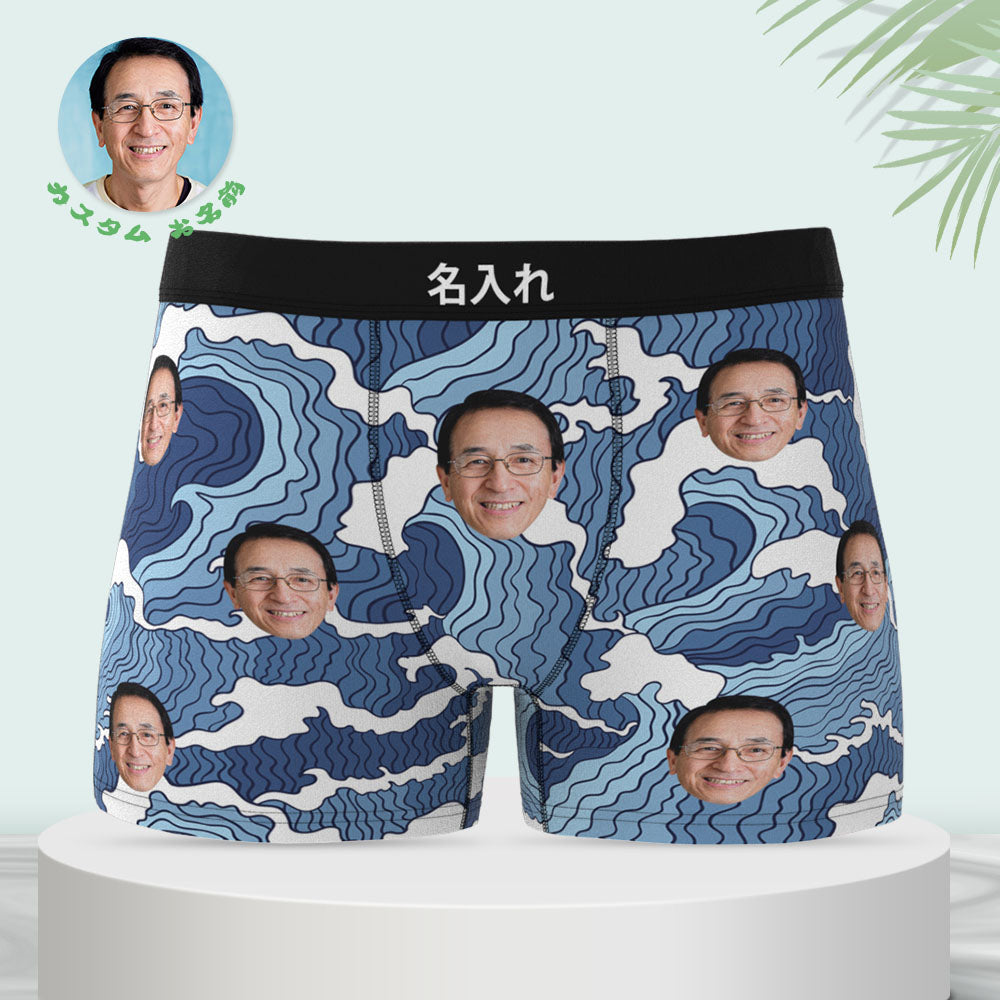カスタム写真ボクサーパンツ-写真や名前入れ可能な海の波柄の下着ショーツギフト