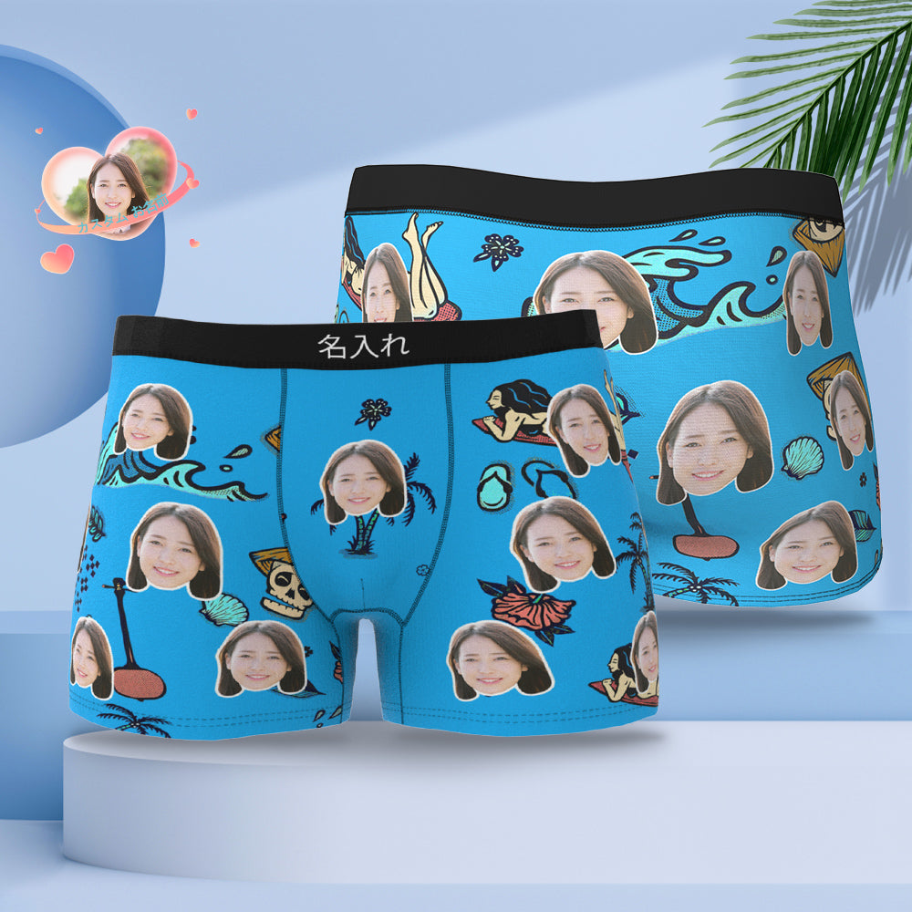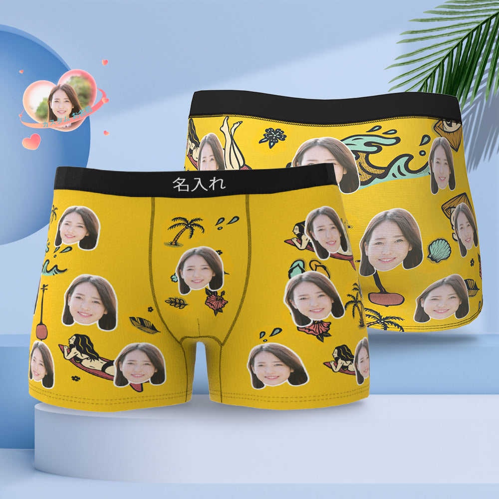カスタム写真ボクサーパンツ-写真や名前入れ可能な夏の砂浜柄の下着ショーツギフト
