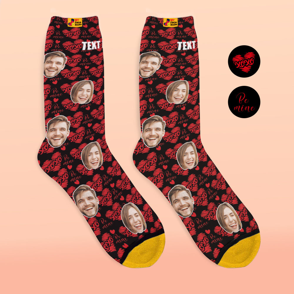 カスタム3Dデジタル印刷ソックス-写真入れ可能な靴下-XOXO