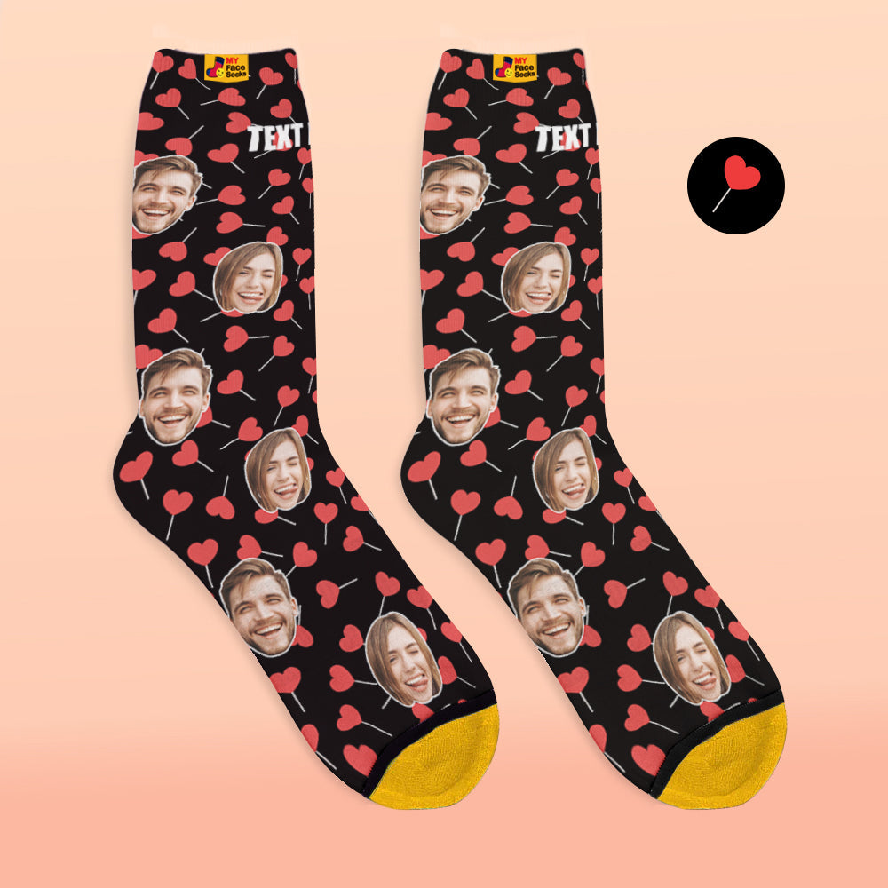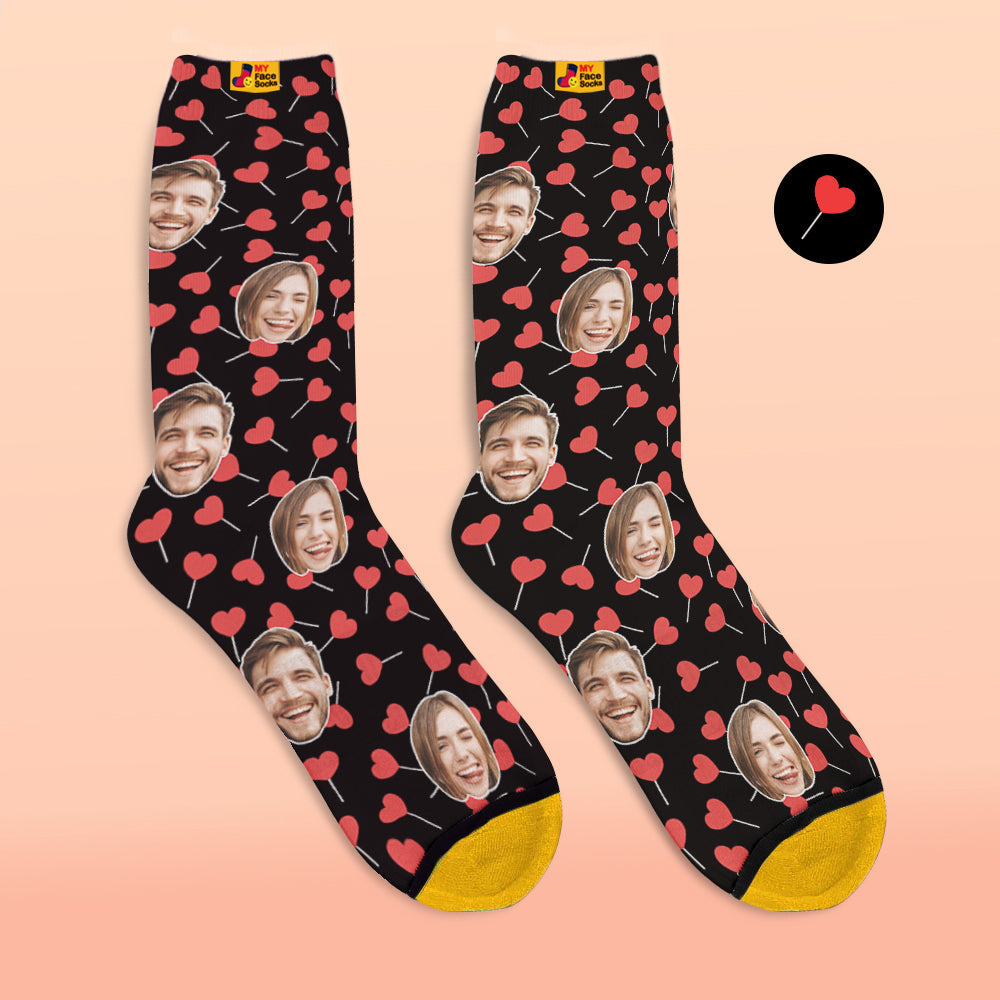 カスタム3Dデジタル印刷ソックス-写真入れ可能な靴下-ハートロリポップ