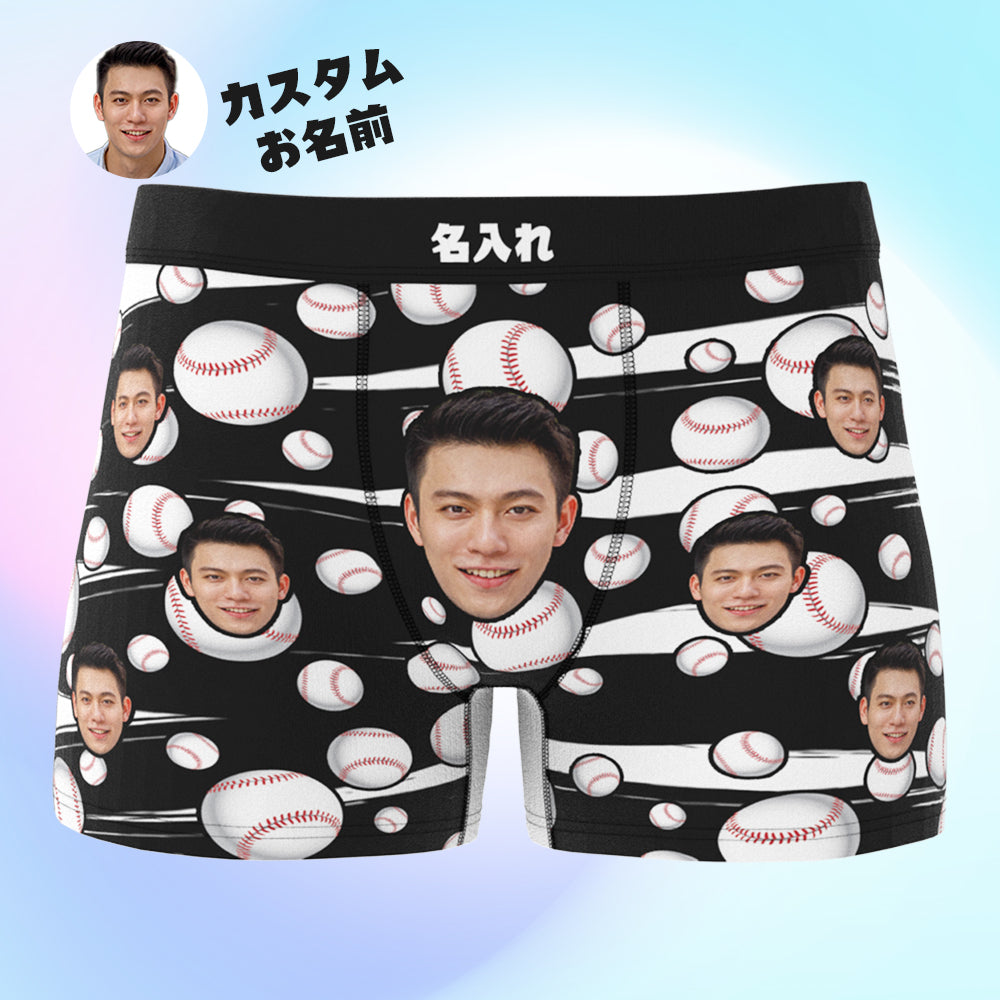 カスタム写真ボクサーパンツ-写真や名前入れ可能な野球柄の下着ショーツギフト