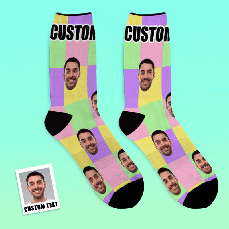 カスタム通気性フェイスソックス - 写真入れ可能なオリジナル靴下 - カラフルなチェック柄