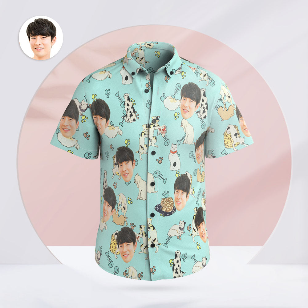 父の日のプレゼントに,おしゃれなお父さんへのカスタムフォトハワイアンシャツ(面白い顔のハワイアンシャツ)