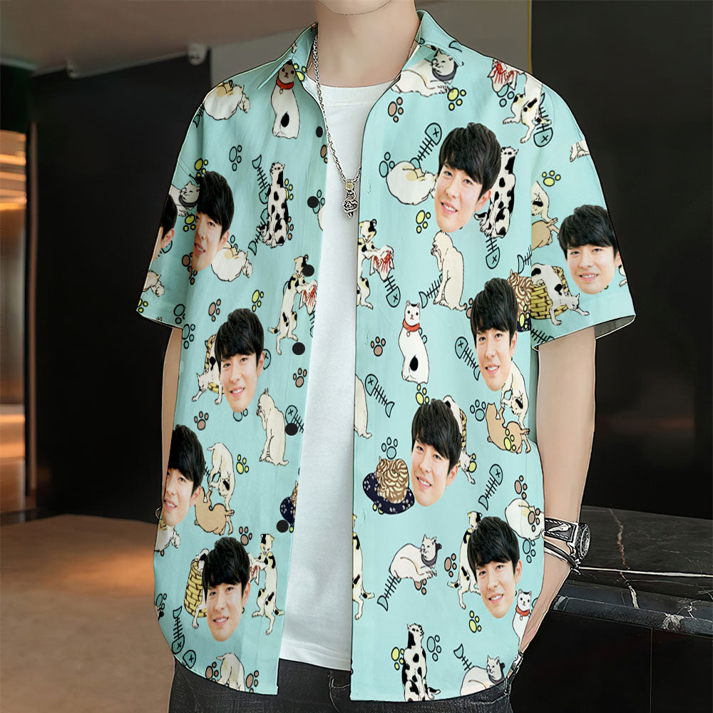 カスタムフォトアロハシャツ-写真や名入り可能なオリジナルアロハシャツ-かわいいネコ柄