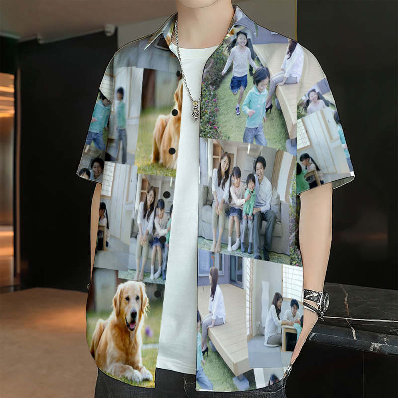 カスタムフォトアロハシャツ-ペットの写真5枚入り可能なオリジナルアロハシャツ