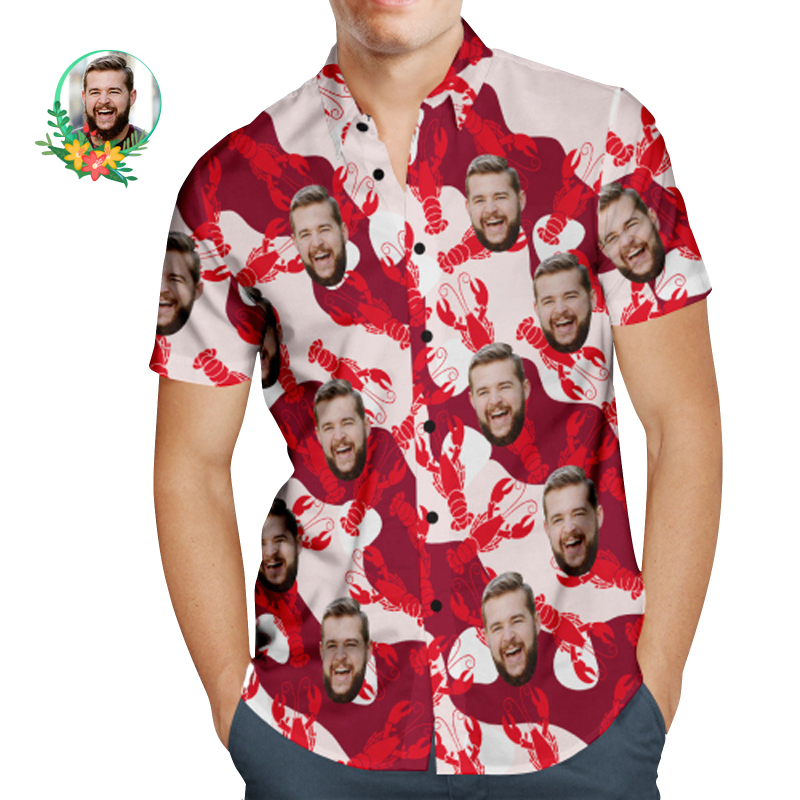 カスタムフェイスハワイアンシャツ - 写真入れ可能なオリジナルアロハシャツ - ロブスター柄
