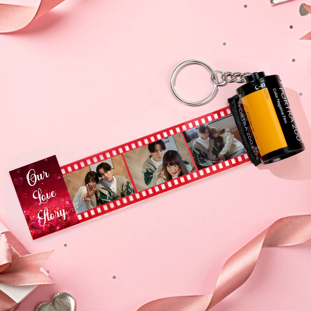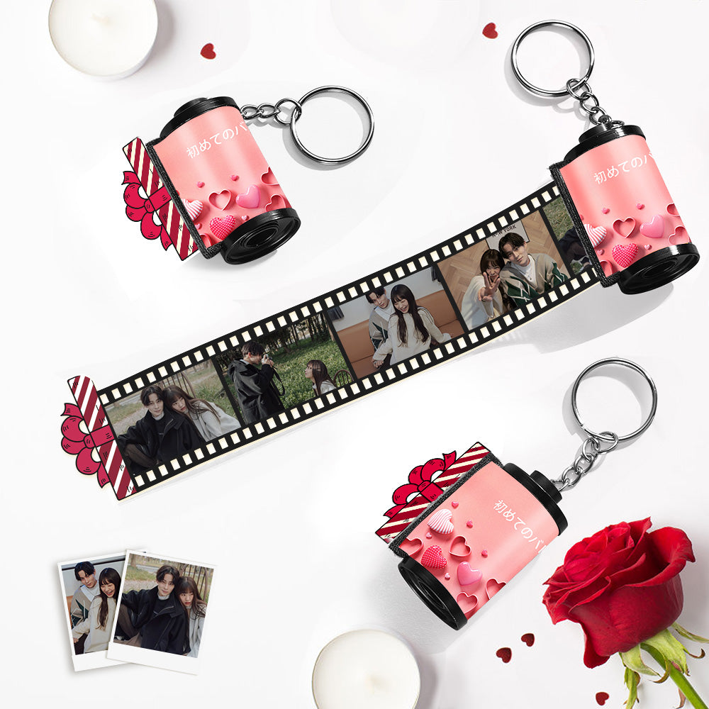 カスタム写真フィルムキーホルダー写真入れ可能な愛のカメラキーホルダーバレンタインデーのプレゼント - 恋の物語
