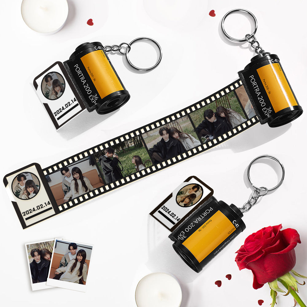 カスタムフォトカメラロールキーホルダーベスト贈り物‐写真5 10 15 20枚写真添付作成バレンタインデーギフト