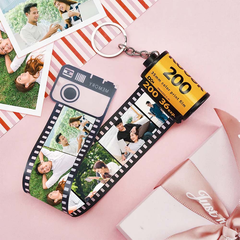 カスタムフォトフィルムキーホルダー - 写真とテキスト入れ可能なカラフルカメラキーホルダー恋人への有意義な贈り物