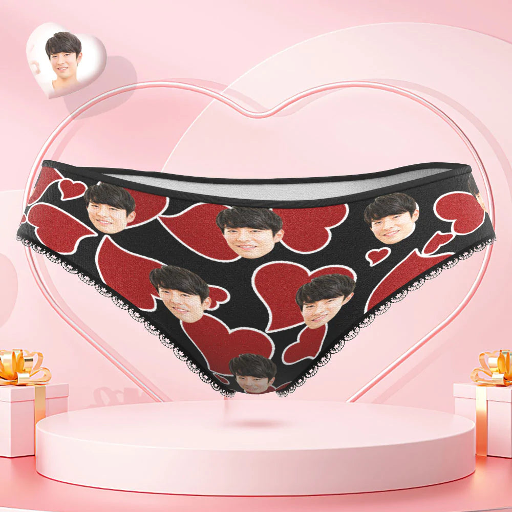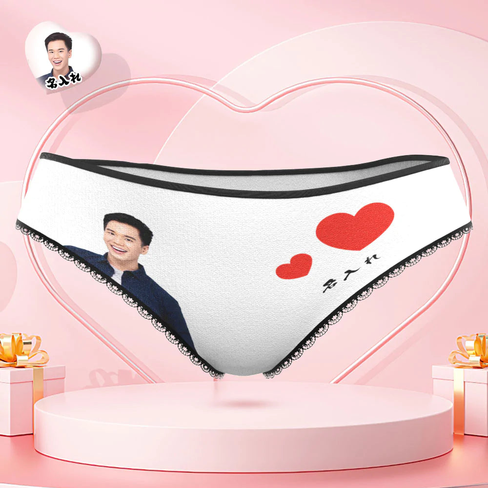 カスタムフォトパンティー-写真と名入れ可能なオリジナルバレンタインプレゼント女性用下着-ハート柄