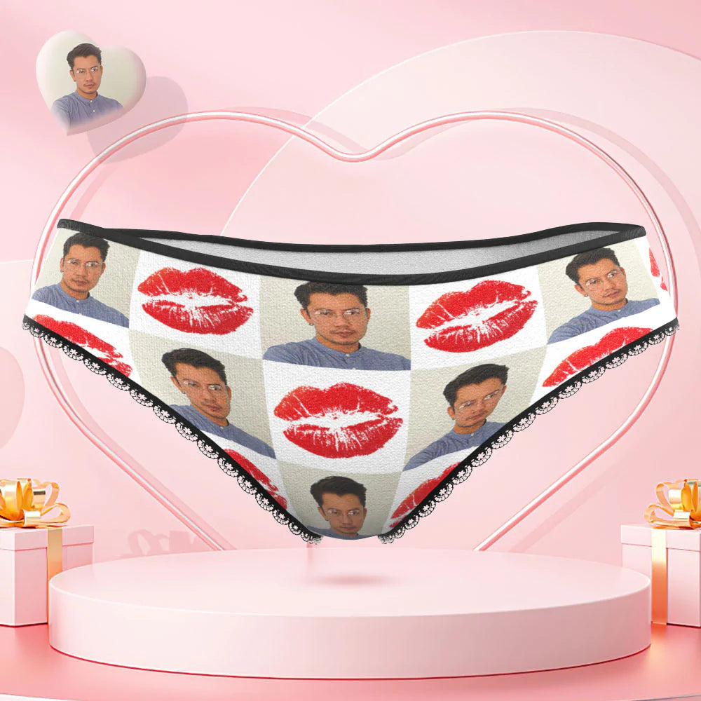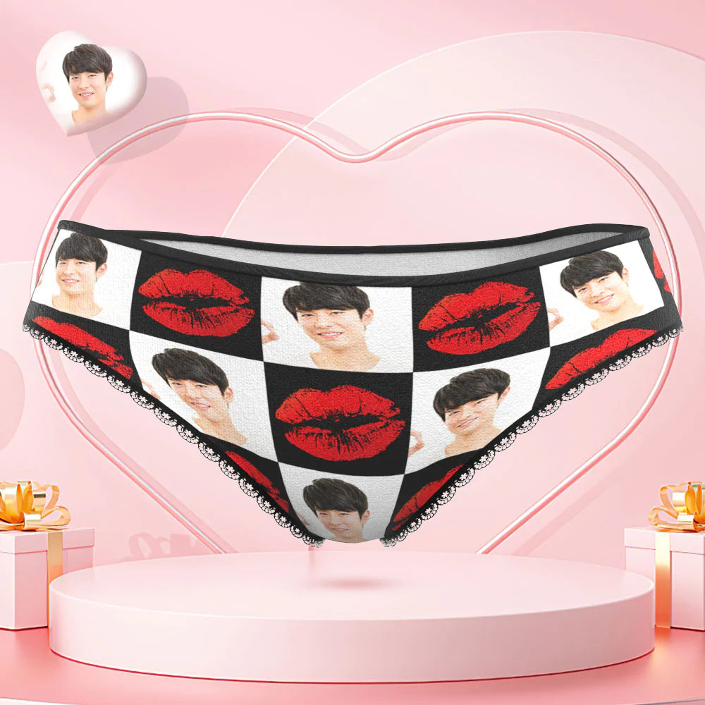カスタムフェイスAR女性用パンティー-写真入れ可能な面白い唇柄のパンティーショーツ彼女へのバレンタインデーギフト