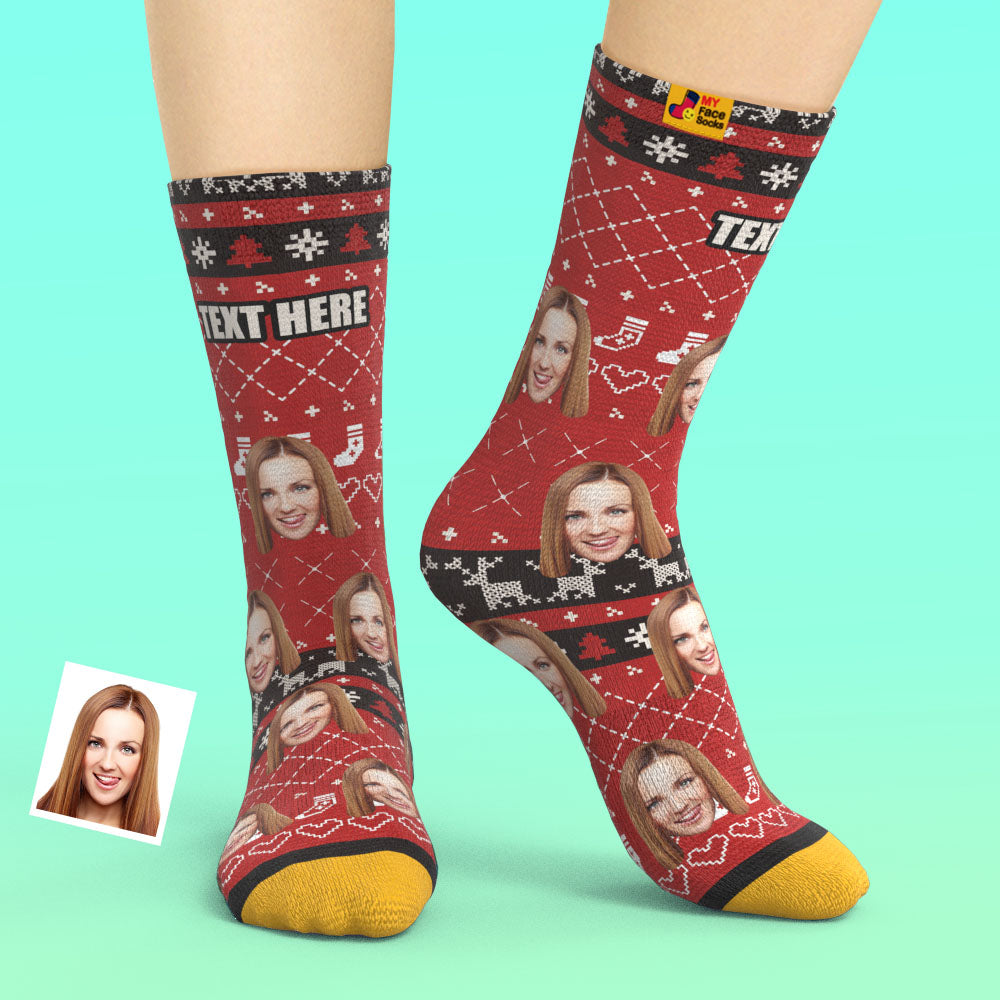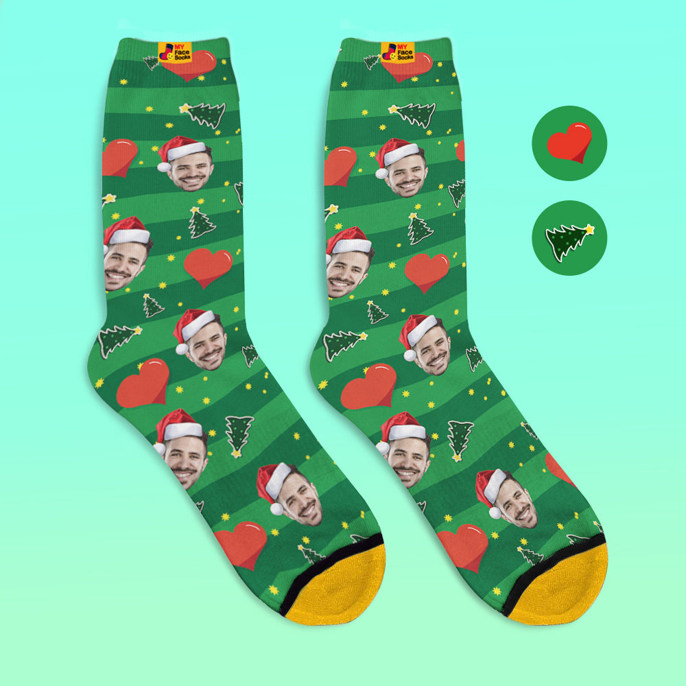 カスタム3Dデジタル印刷ソックス - 写真と名入れ可能な靴下プレゼント - クリスマスハート柄