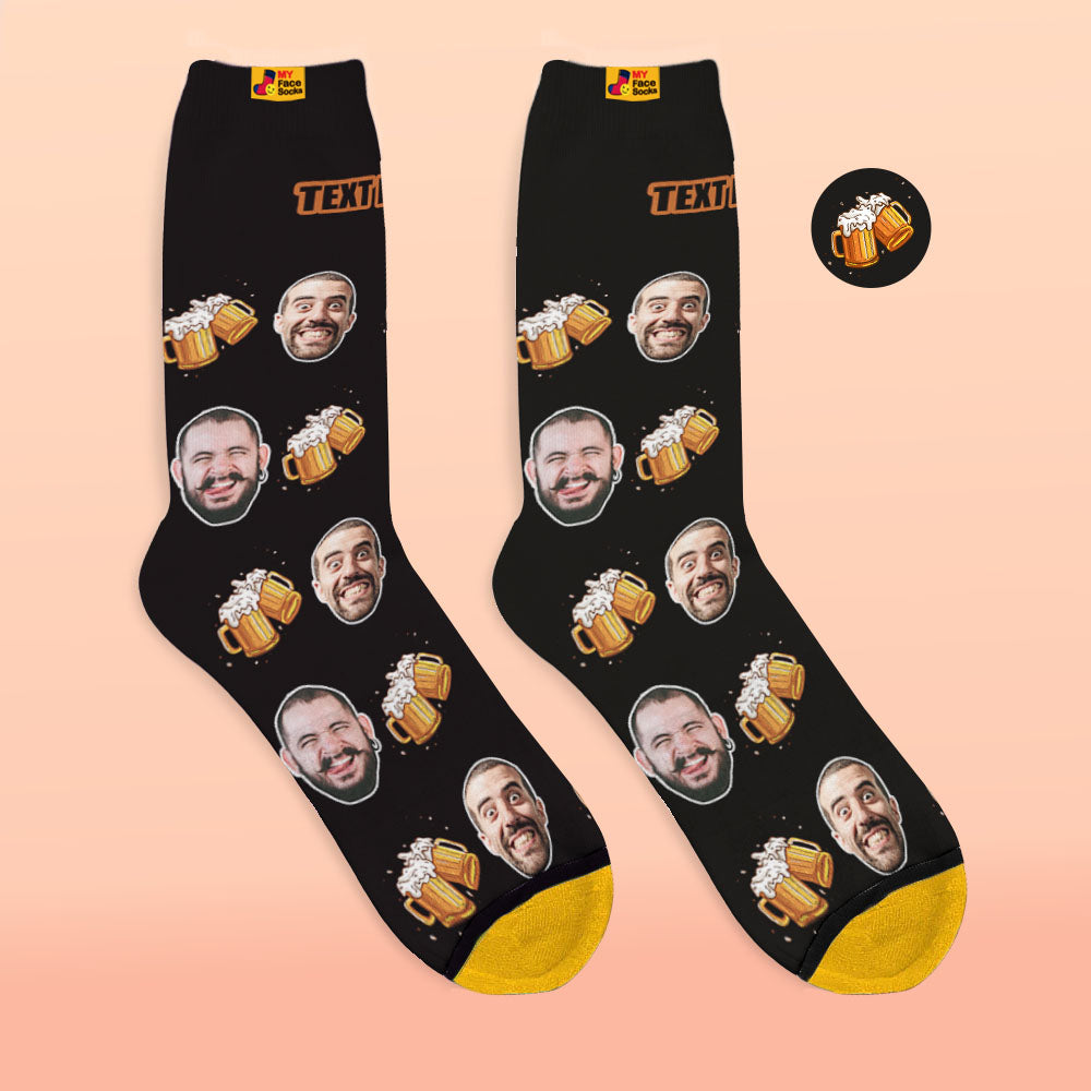 カスタム3Dデジタル印刷ソックス-写真や名入れ可能な靴下-父の日ギフトビール乾杯
