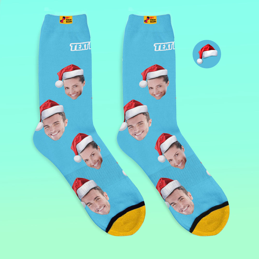 カスタム3Dデジタル印刷ソックス-写真や名入れ可能な靴下-サンタ帽子クリスマスギフト