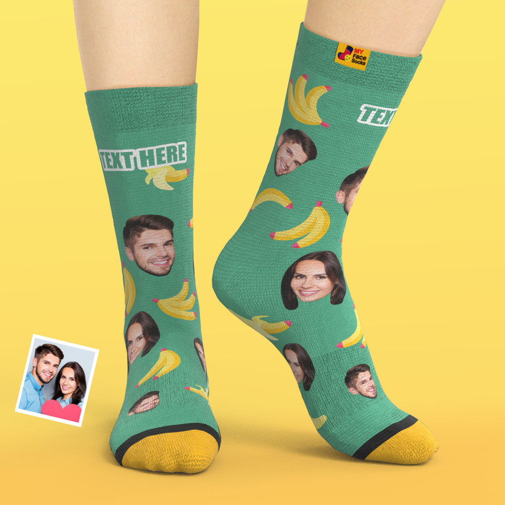カスタム3Dデジタル印刷ソックス-写真や名入れ可能な靴下-バナナ