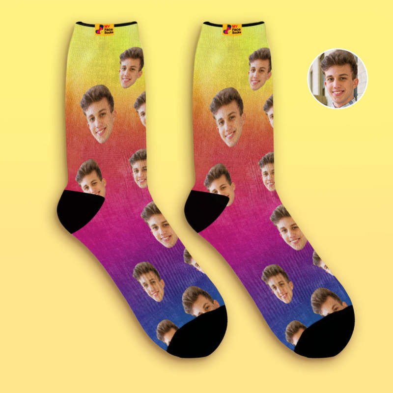 カスタム通気性フェイスソックス - 写真入れ可能なオリジナル靴下 - 虹柄ソックス