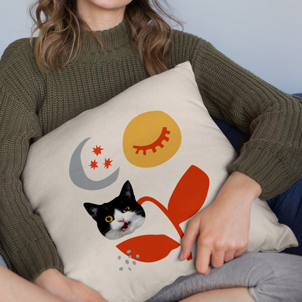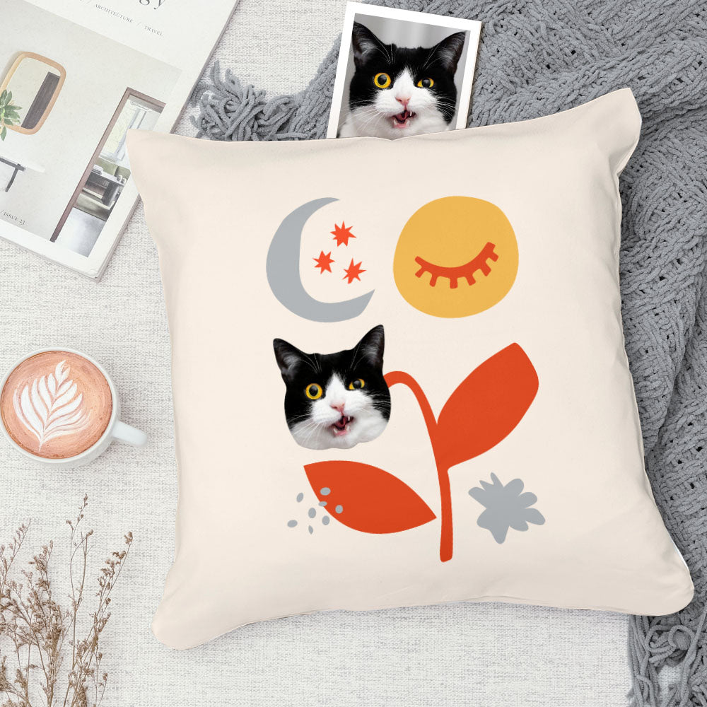 カスタム写真クッション-写真入れ可能な花と猫柄のオリジナル抱き枕ギフト