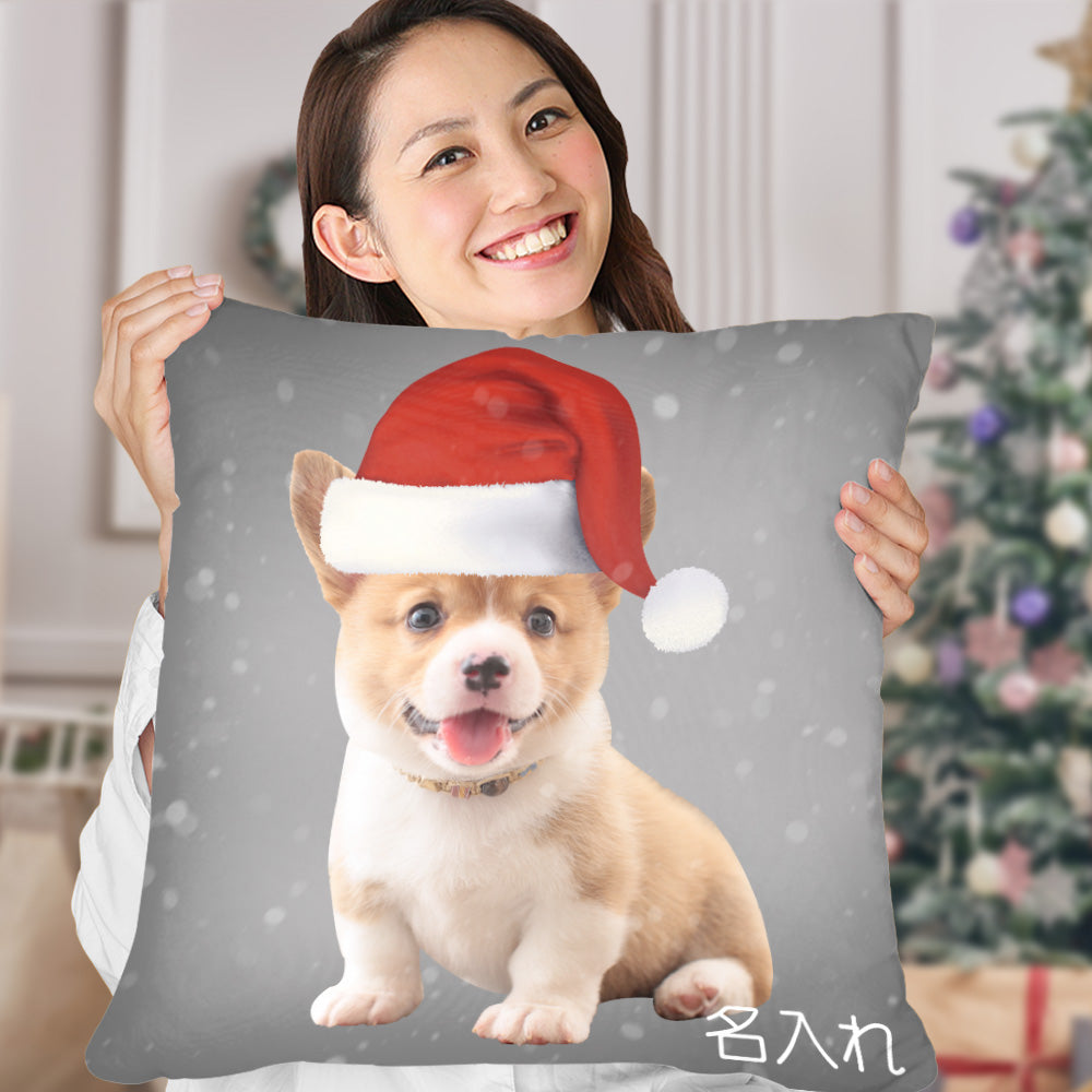 カスタムフォトクッション-可愛いペット写真入れ名入れ可能なサンタ帽子柄のオリジナル抱き枕ギフト
