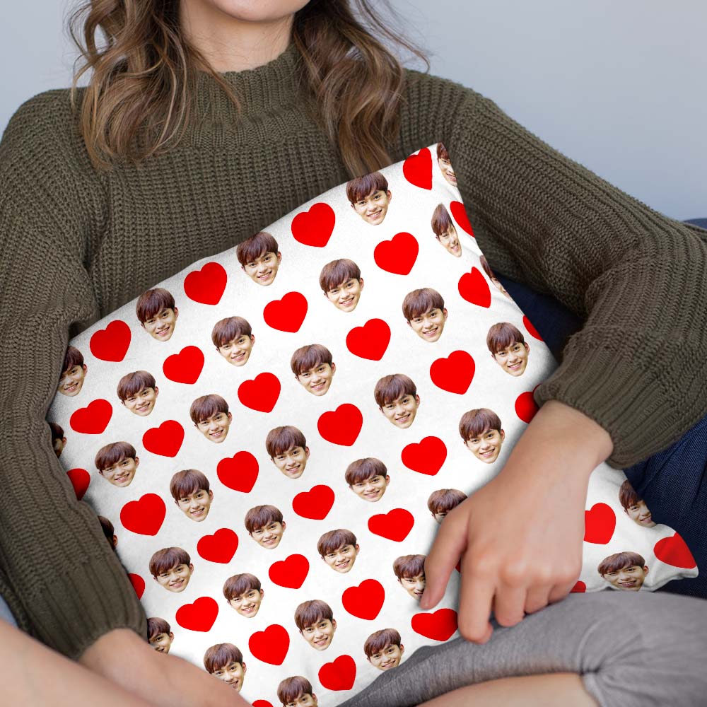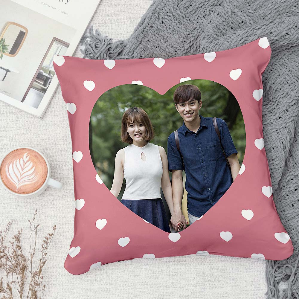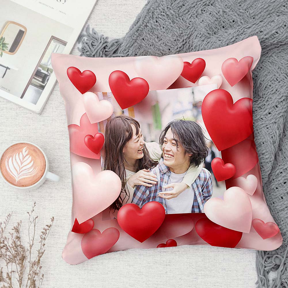 カスタムフォトクッション-写真入れ可能なオリジナル抱き枕ギフト大切な人へのバレンタインプレゼント-ハートだらけ