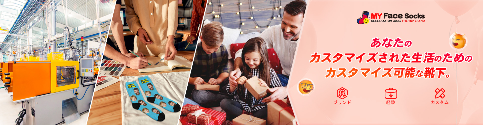 myfacesocksでは、あなたのアイデアとビジョンを実現するために、最高のデザイナー、優れたカスタマーサポート、マーケティングの専門家などを持っています。私たちは25人の小さなグループですが、夢は大きく、一度に1ペアずつです。靴下や下着だけでなく、毛布やパジャマ、アロハシャツなども取り扱っています。