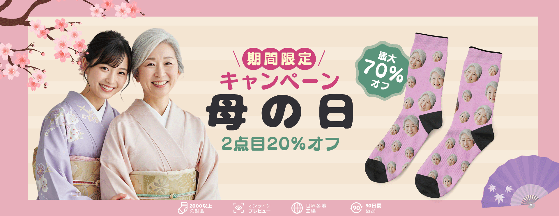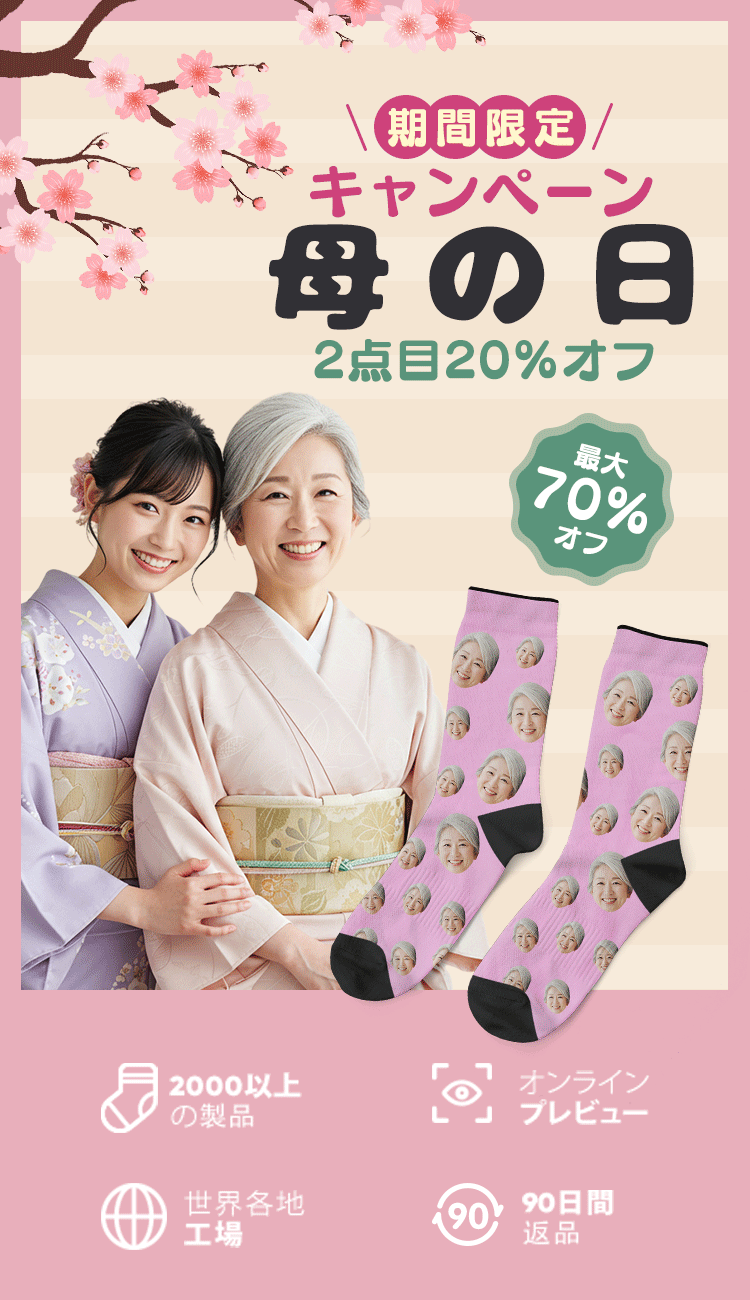 カスタムフォトソックス-写真やテキスト入れ可能な母の日の靴下プレゼント-さくら柄 -