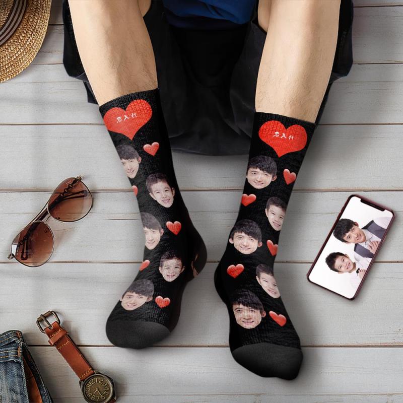 カスタムフェイスソックス-写真やテキスト入れ可能な3Dプレビューハート柄の靴下父の日ギフト