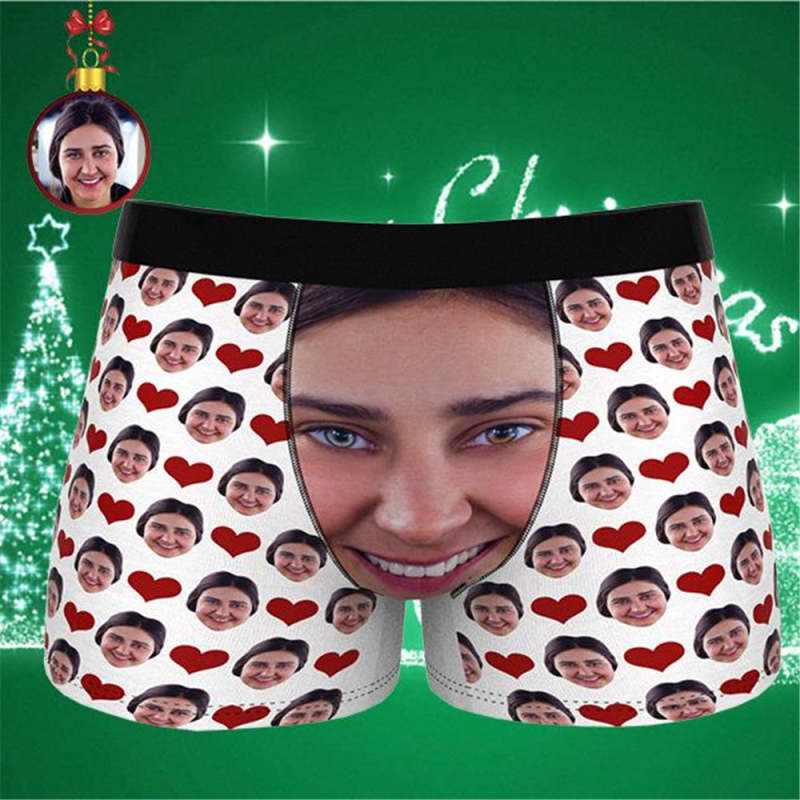 カスタムフェイスボクサーパンツ-写真入り可能なオリジナル下着ラブハートバレンタインプレゼント