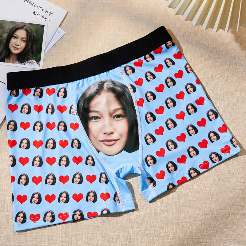 カスタムフェイスボクサーパンツ-写真入り可能なオリジナル下着ラブハートバレンタインプレゼント
