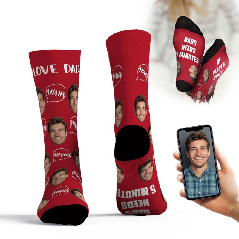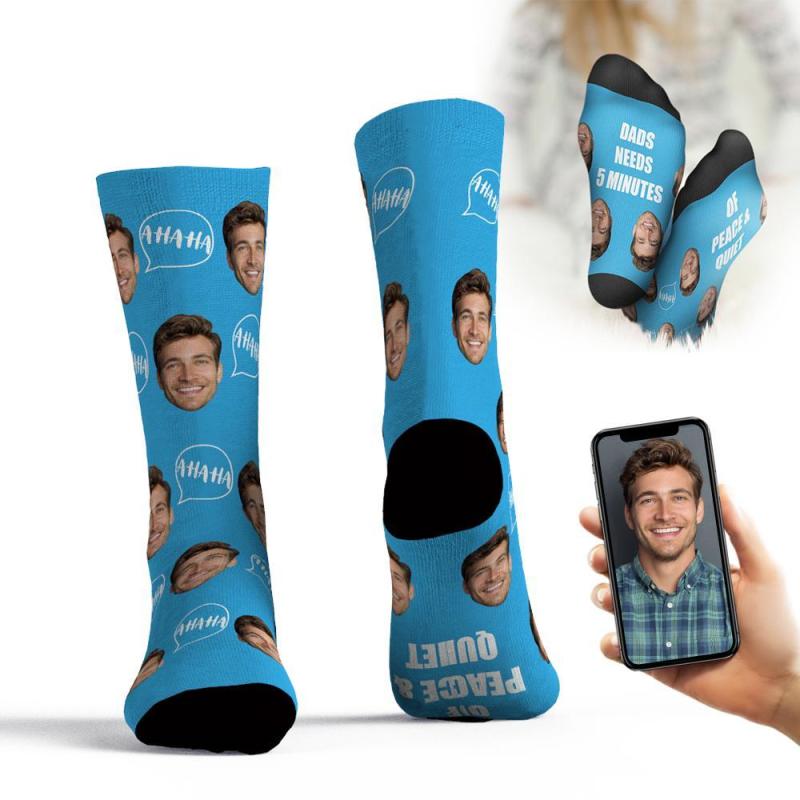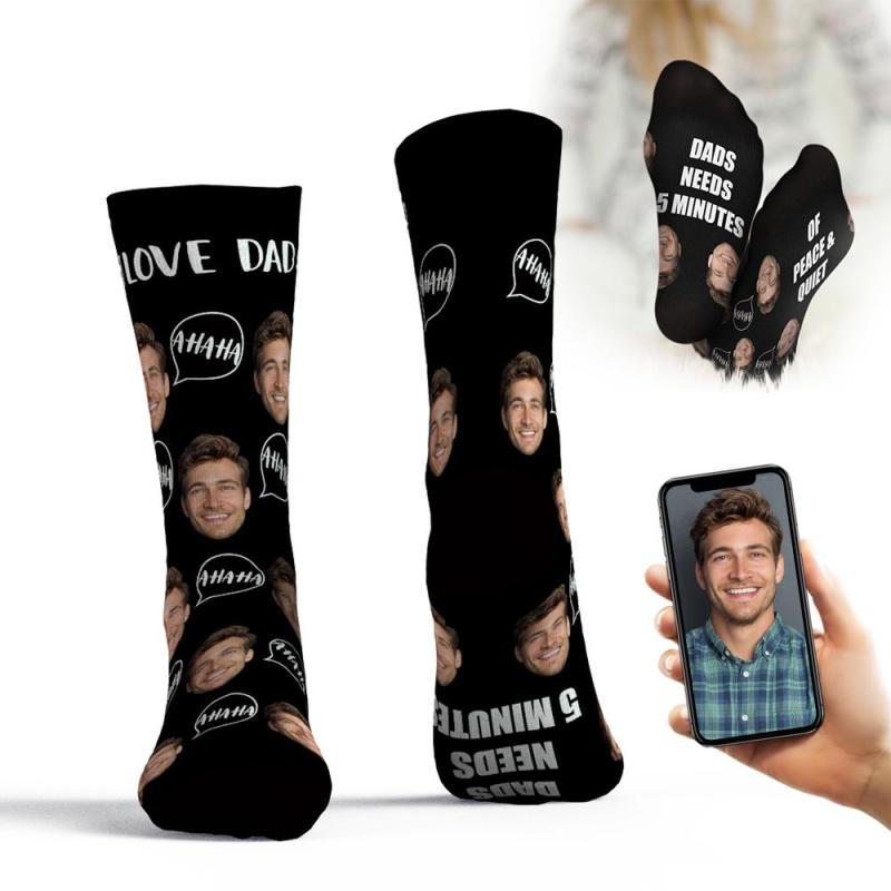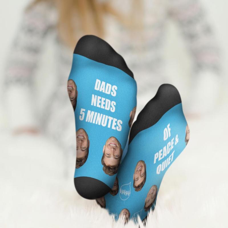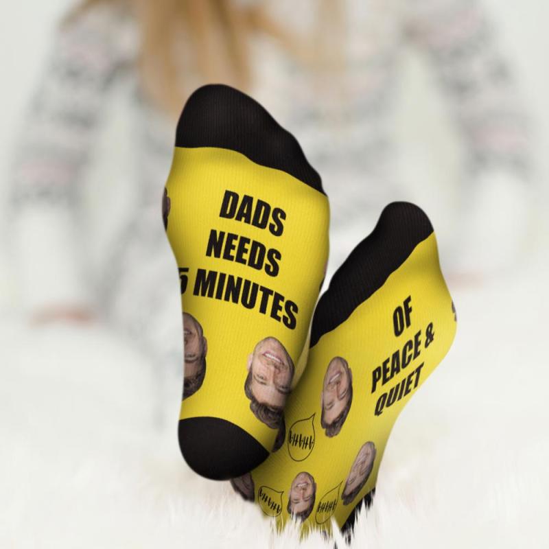 父の日プレゼント-写真入り名入りカスタムフェイスソックス - お父さんは5分間の平和と静けさを必要とします