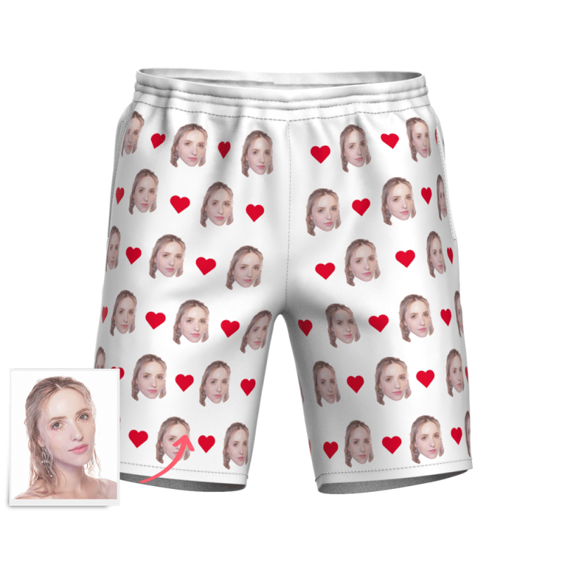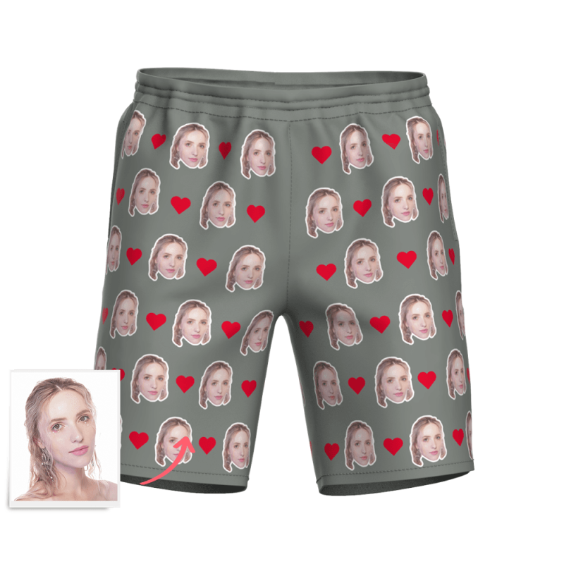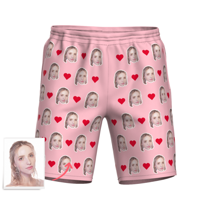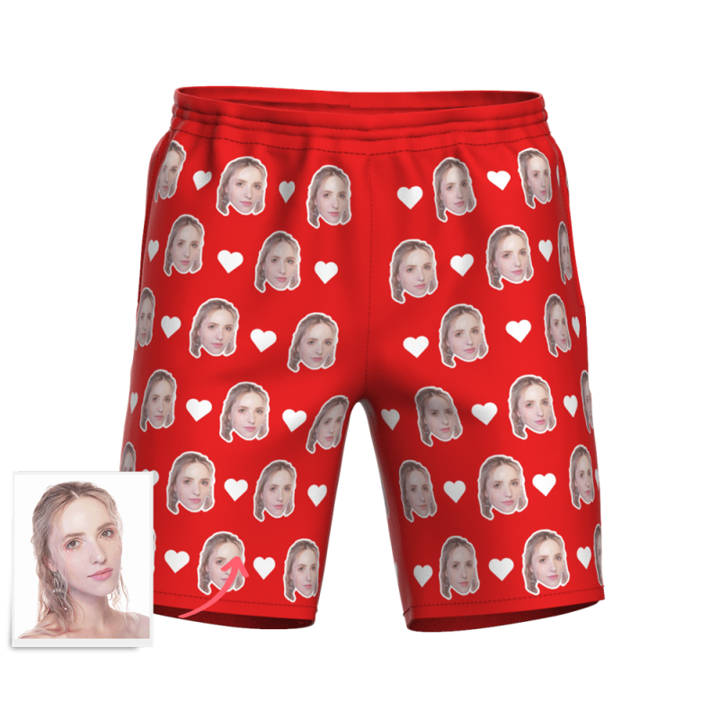 記念日プレゼント-メンズカスタムフェイスサーフパンツ-写真入り可能なオリジナル水着最高の贈り物メンズ水着フェイスマッシュハートマーク付き