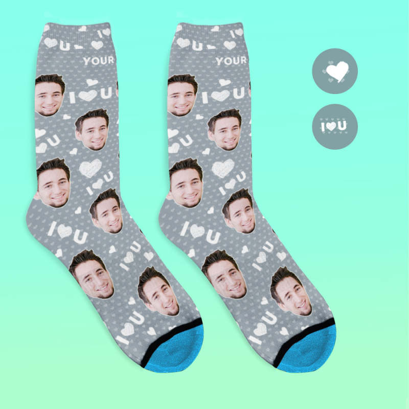 カスタム3Dデジタル印刷ソックス-写真入れ可能な靴下-愛しています