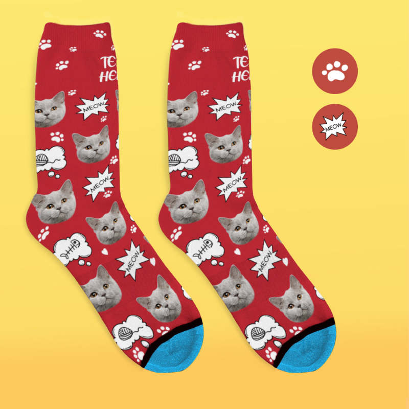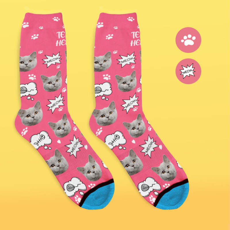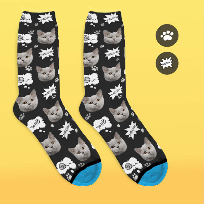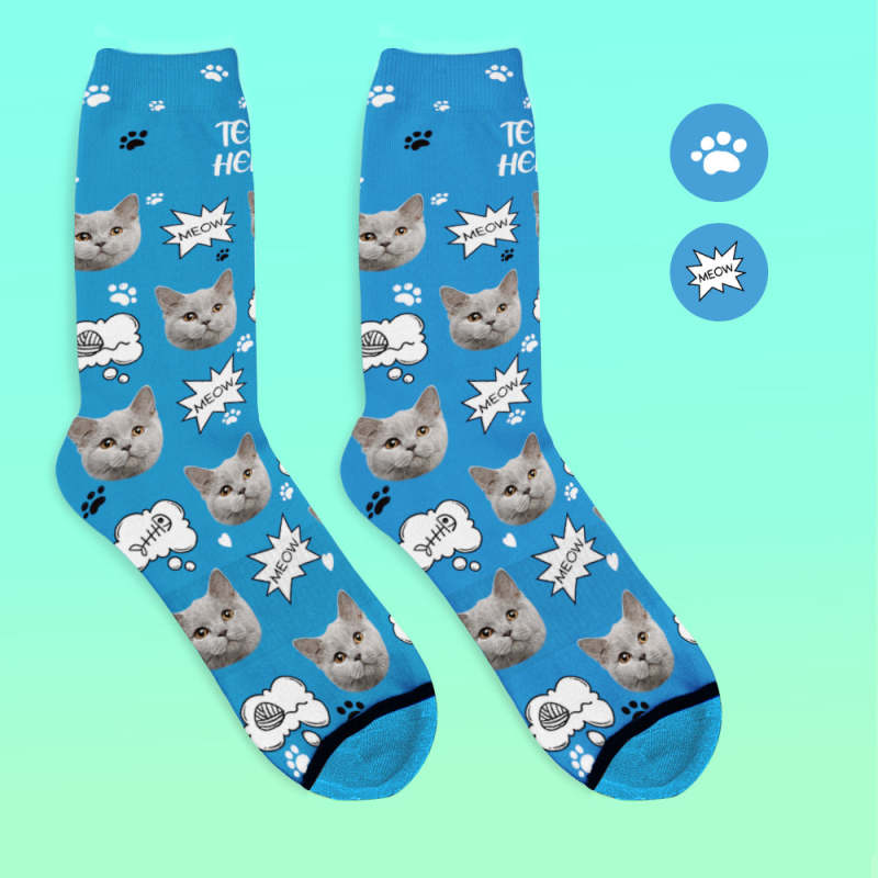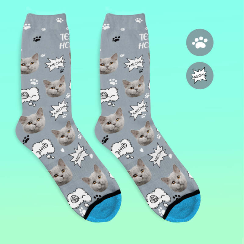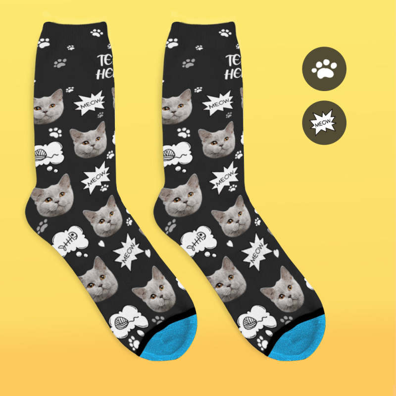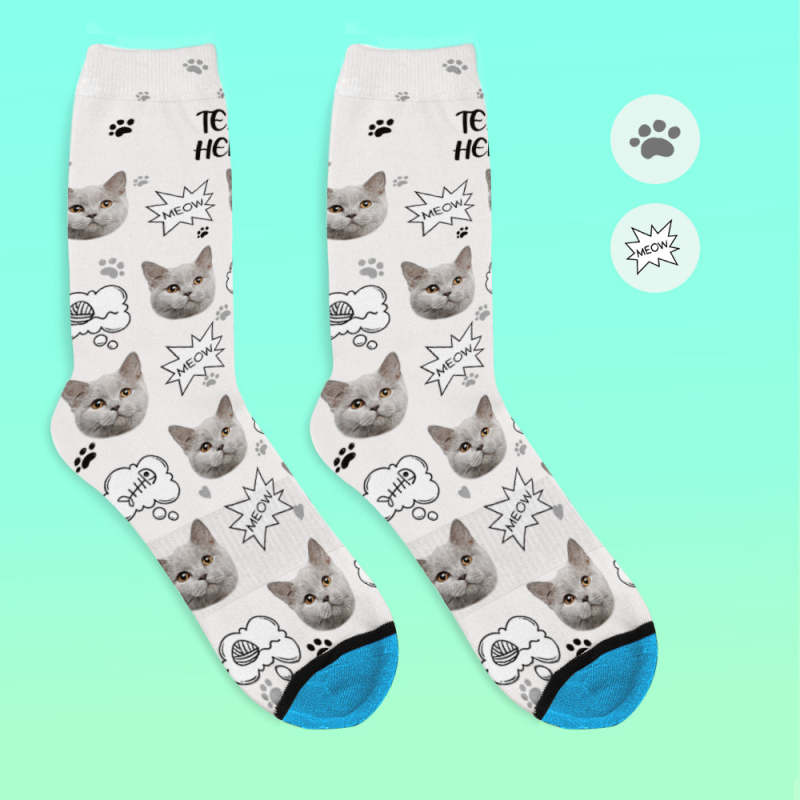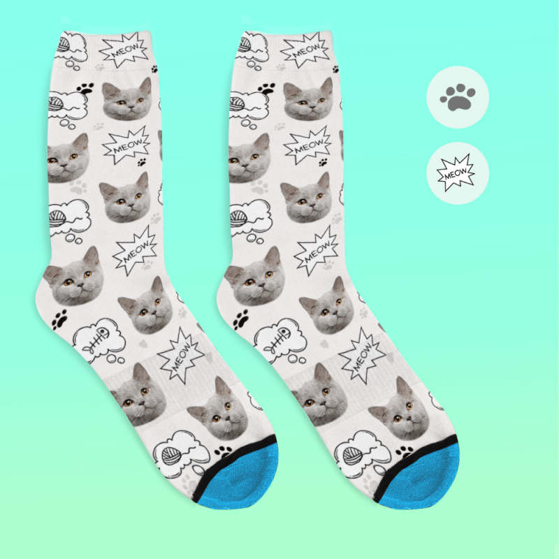 カスタム3Dデジタル印刷ソックス-写真入れ可能な靴下ギフト-ニャー