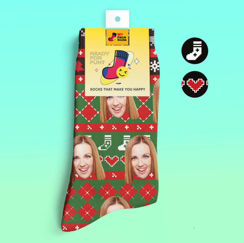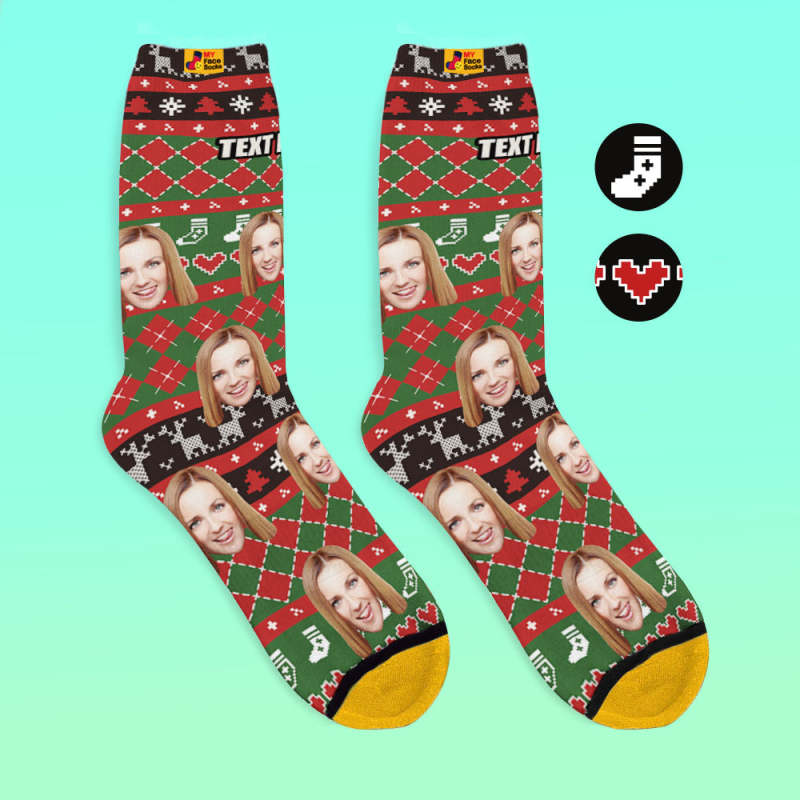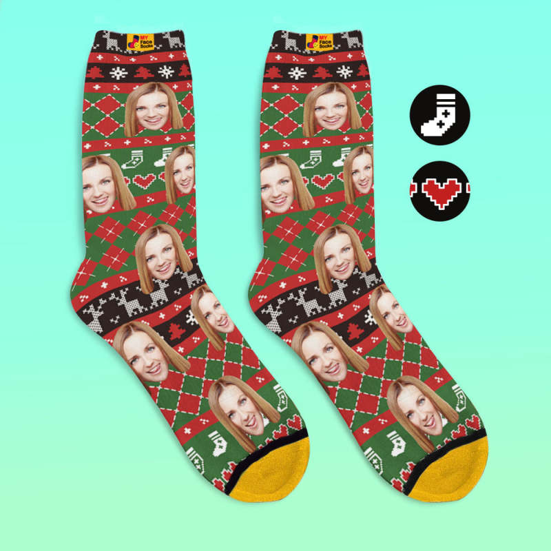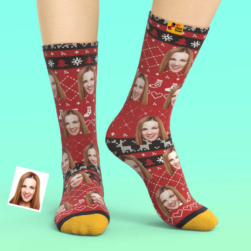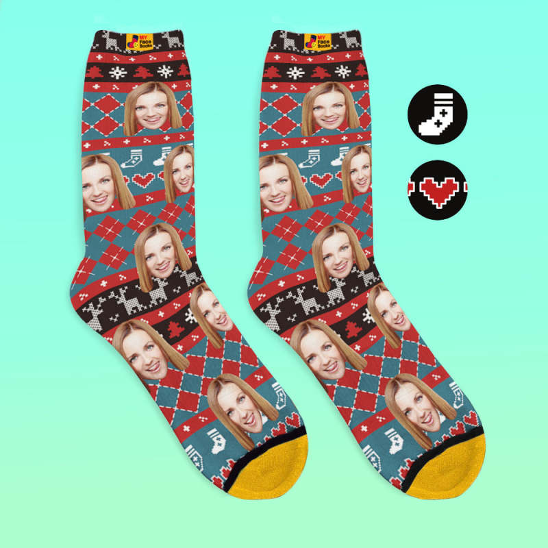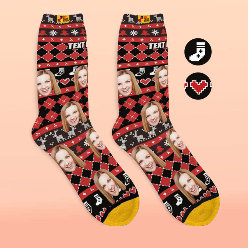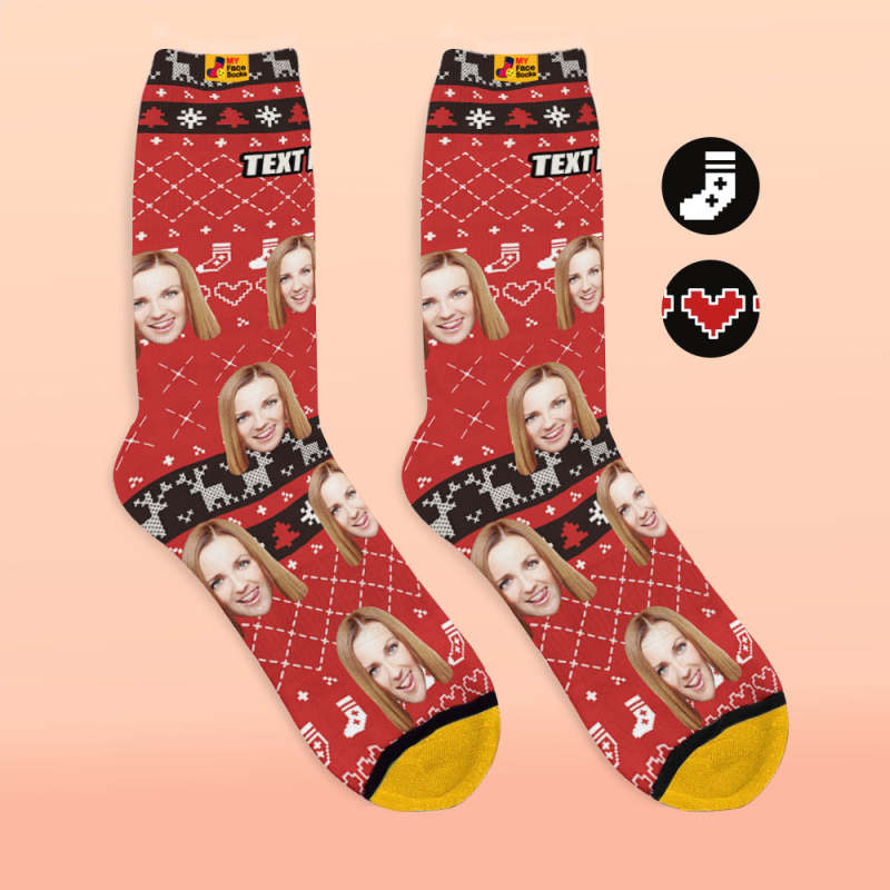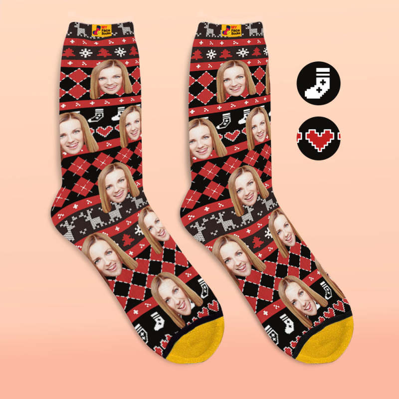 カスタム3Dデジタル印刷ソックス-写真や名入れ可能な靴下-ハート柄