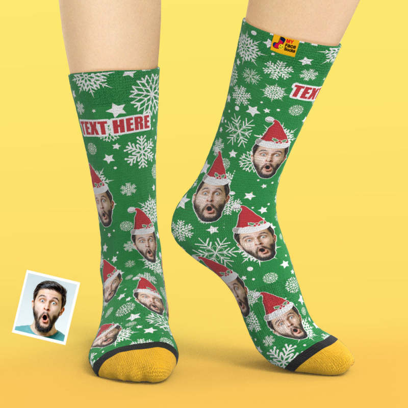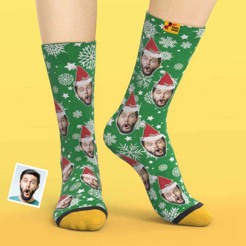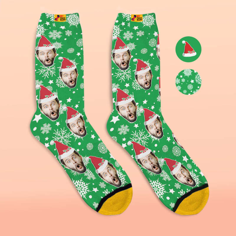 カスタム3Dデジタル印刷ソックス-写真入れ可能な靴下-クリスマス靴下サンタ帽子