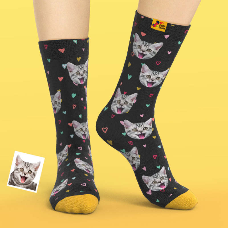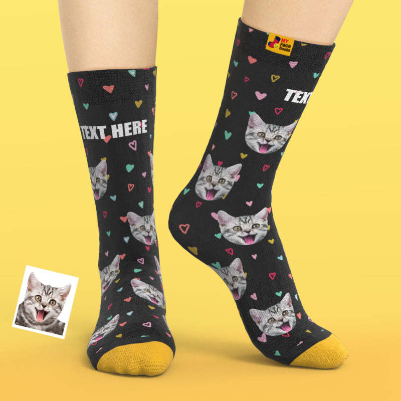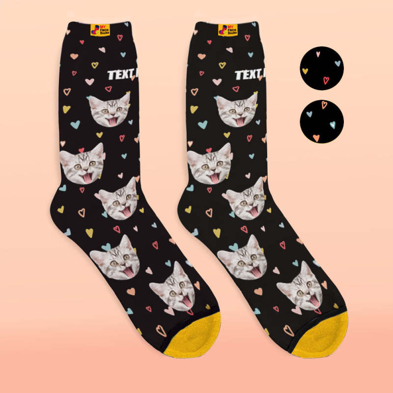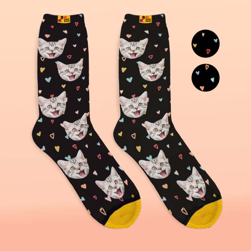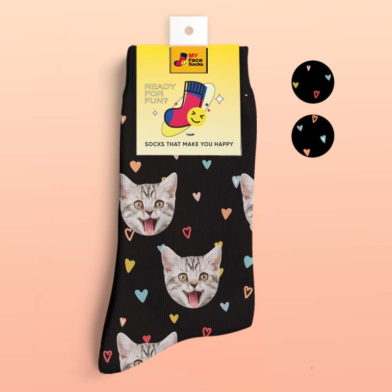 カスタム3Dデジタル印刷ソックス-写真入れ可能な靴下-カラフルなハート