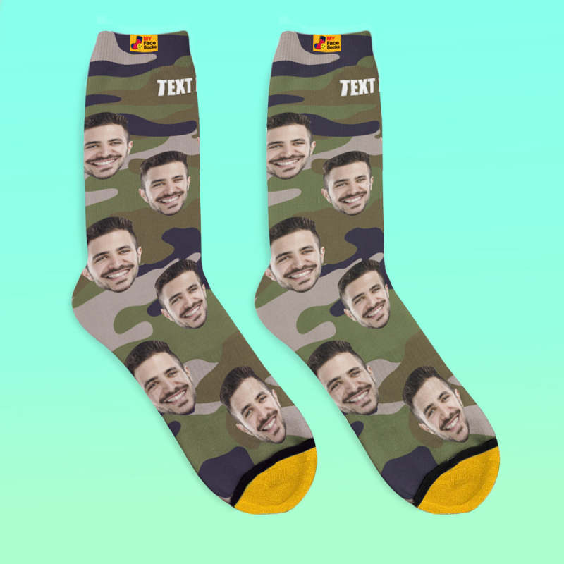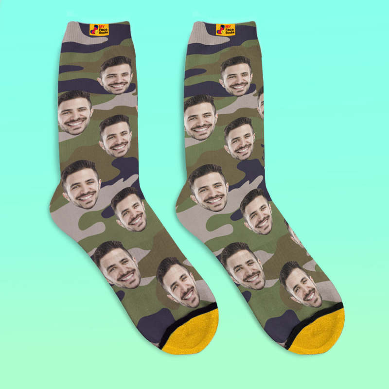カスタム3Dデジタル印刷ソックス-写真入れ可能な靴下-グリーン迷彩
