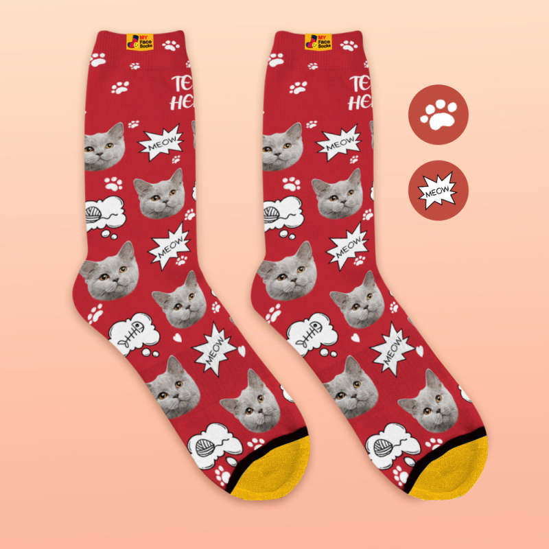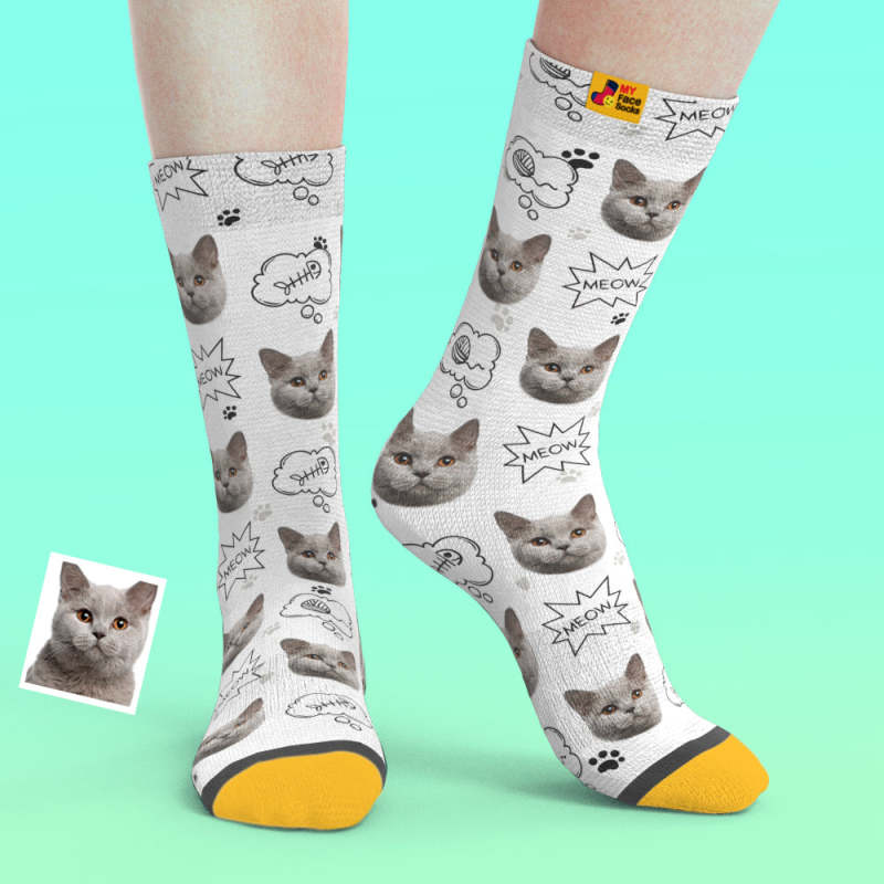 カスタム3Dデジタル印刷ソックス-写真入れ可能な靴下-ニャー